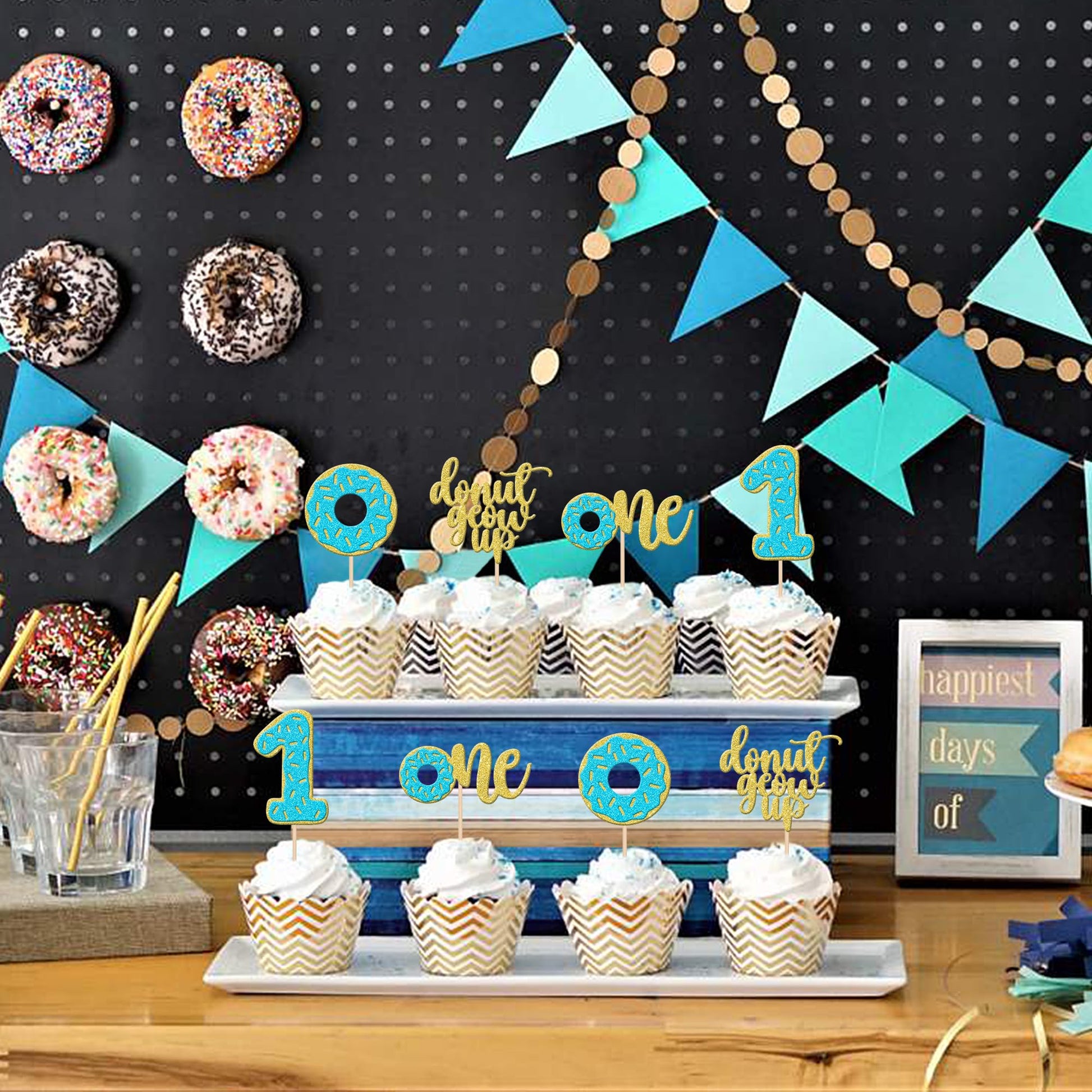24 Pcs Donut 1St Birthday Cupcake Toppers Glitter Donut Grow Up One Cupcake Picks Donut First Birthday Party Decoration For Donut Theme Baby Shower Boys Birthday Party Cake Decorations Supplies Blue Perfect For Donut Theme Party, Sweet Donut Theme First Birthday Party, Donut One Theme Party, Donut Grow Up Theme Party, Baby Shower Theme Party, Sweet Theme Party, Kids Boys 1St Birthday Party Cupcake Decorations Supplies. Pack Of 24 Pcs, 6 Pcs Of Each Design. The Size Is 1.9*4.5/ 2.7*3.9/ 2.5*4.7/ 1.5*4.7 Inch ( With Stick ) Made Of High Quality Paper Card Stock. These Donut One 1St Birthday Cupcake Toppers Are Single Glitter, The Back Is White, And They Are Intended For Decoration Only, Please Do Not Put Them In Oven Or Microwave. If The Item You Received Has Any Defects, Please Contact Us Immediately.We Will Deal With It Within 24 Hours.