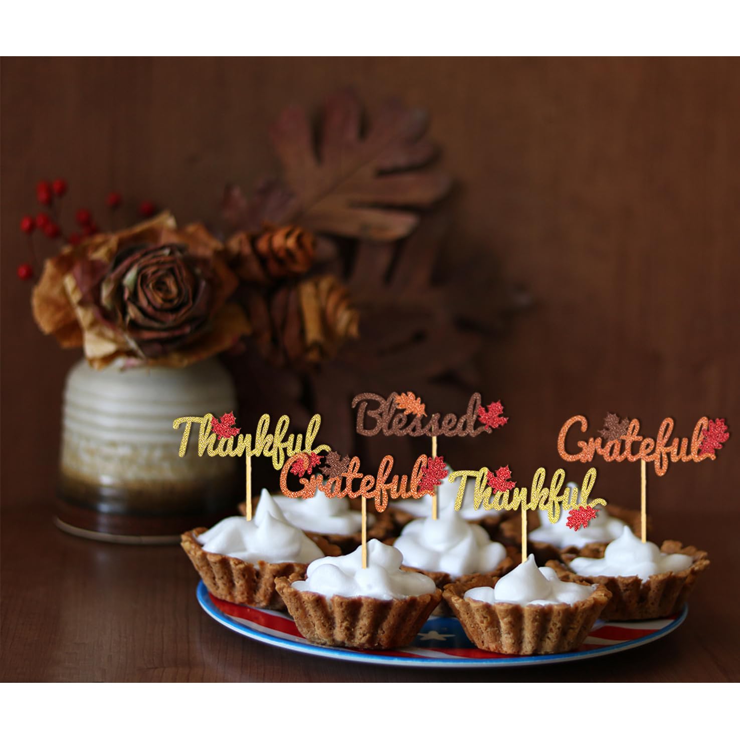 Package Included: 24 Pcs Fall Cupcake Toppers,There Are Perfect For Thanksgiving Day Decorations. | High Quality:Our Thankful Blessed Grateful Thanksgiving Cupcake Toppers Are Made Of High Quality Card Stock And Food-Grade Toothpick, Very Safe.These Toppers Will Add More Attraction To Your Thanksgiving Theme Party. | Widely Application: Unique Personalized Thanksgiving Theme Design. Best Thanksgiving Day Cake Decor Which Can Be Used At Your Friends Birthday Party Decorations, And Other Similar Theme Parties. | No Assembled Required: These Thanksgiving Day Cupcake Toppers Are Assembled In Advance, So You Don'T Need To Diy It By Yourself, You Can Insert Them Into Your Cake Or Cupcakes And Adjust The Suitable Height To Show Better Effects. | Notice: The Cake Toppers Are Not Edible And Intended For Decoration Only, Please Do Not Put These Cake Toppers In Oven.