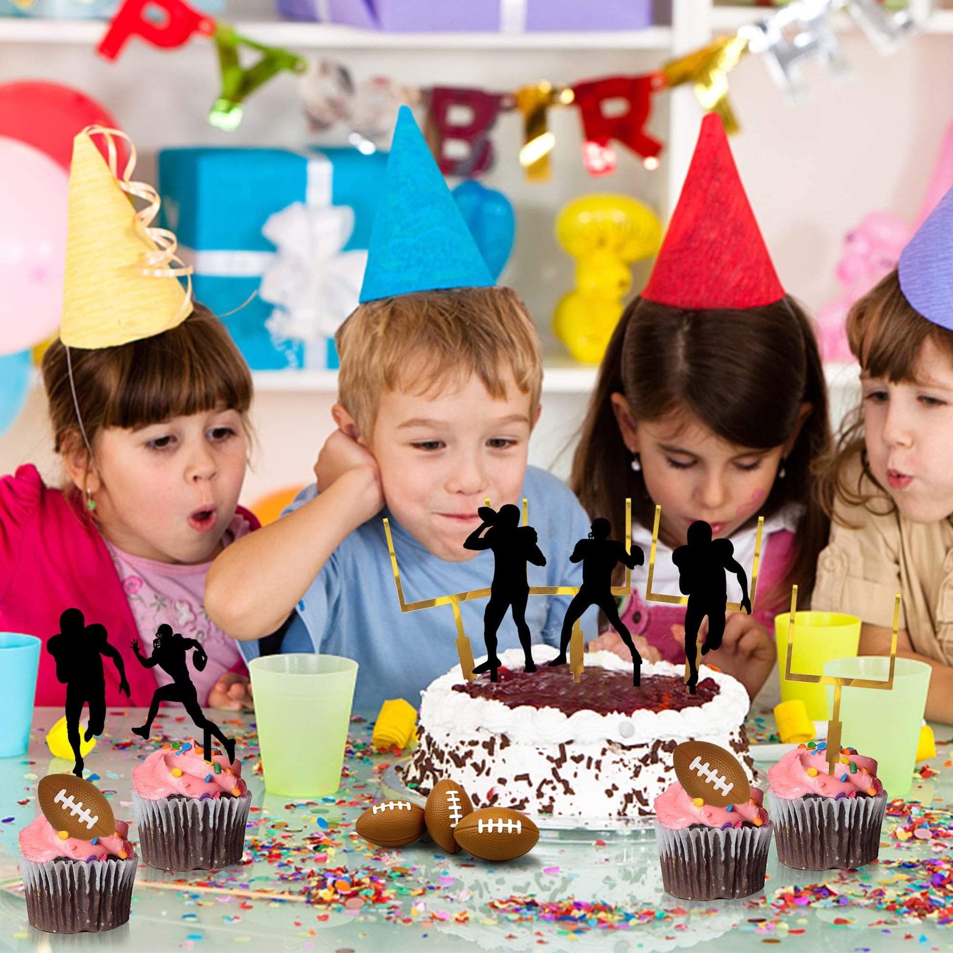 • Q: Can I use these decorations on cupcakes and other desserts? A: Absolutely! The football-themed cake decorations are versatile and can be used on cakes, cupcakes, ice cream, fruit, cookies, and various other desserts to enhance your football party theme.