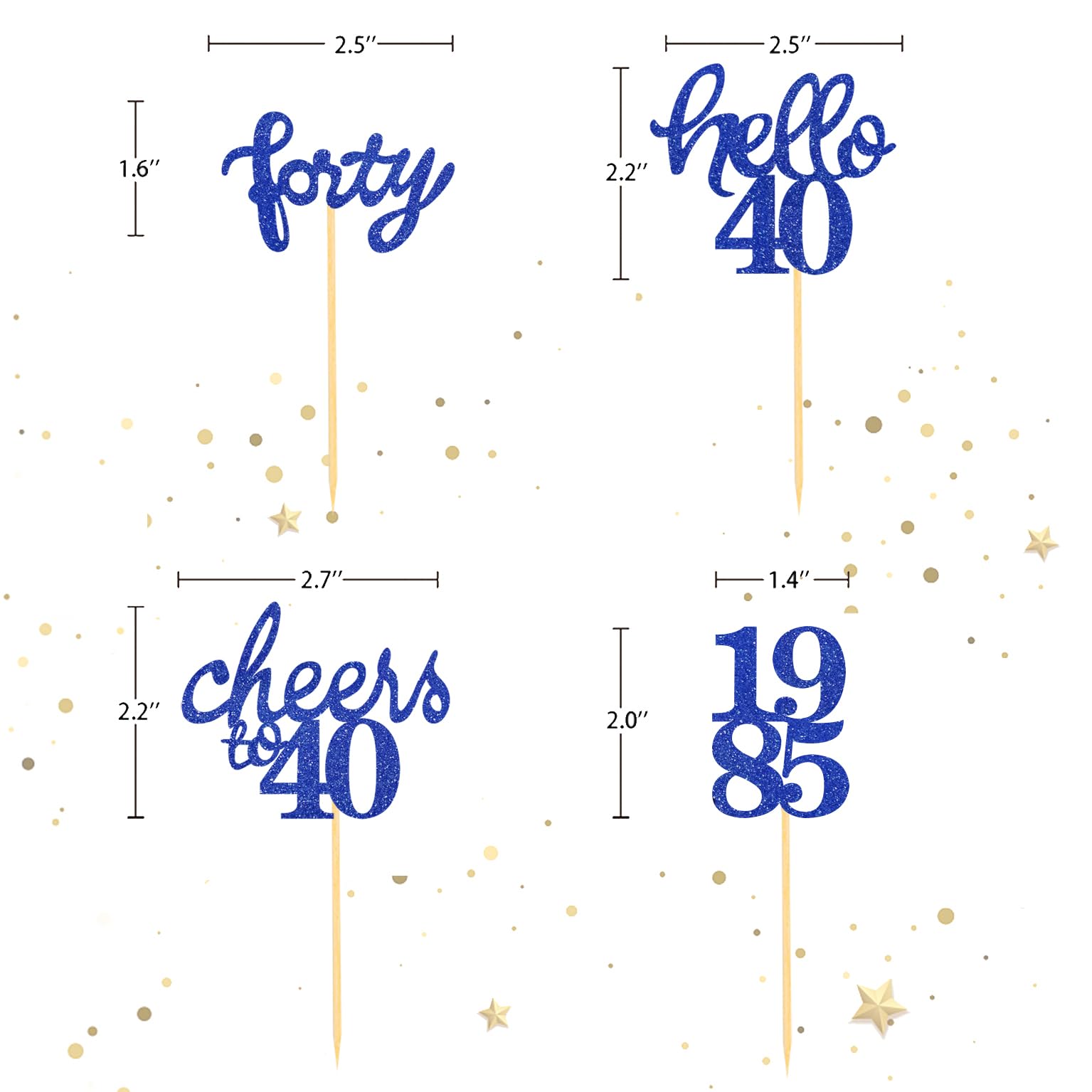 Q: What are the dimensions of the 40th birthday cupcake toppers?A: The 40th birthday cupcake toppers each measure 1.3 inches in length and 1.3 inches in width, making them a perfect size for standard cupcakes.