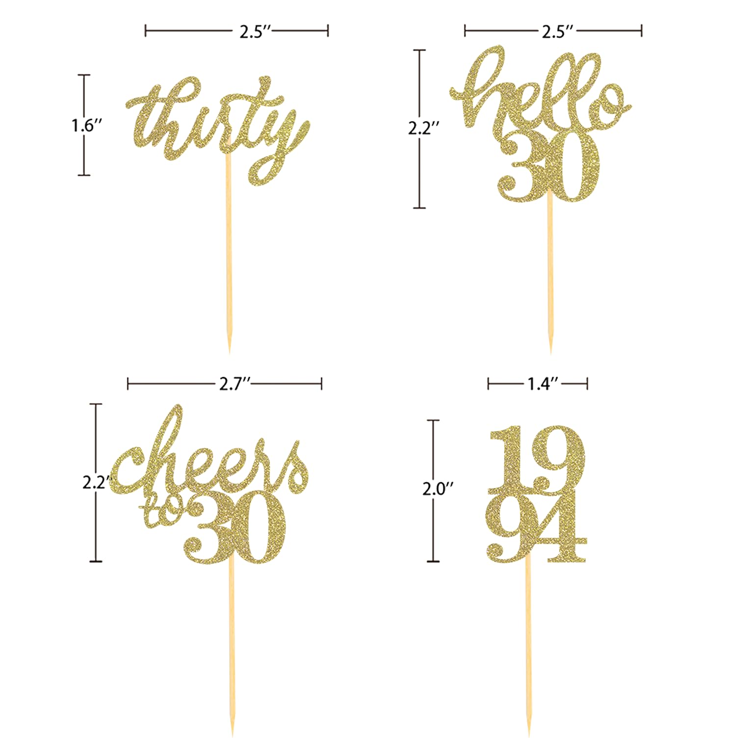 30Th Birthday Cupcake Toppers Can Decorate Your 30Th Birthday Party, 30Th Anniversary Party, Cheers To 30 Years Retirement Theme Party Cupcake Decorations Supplies.