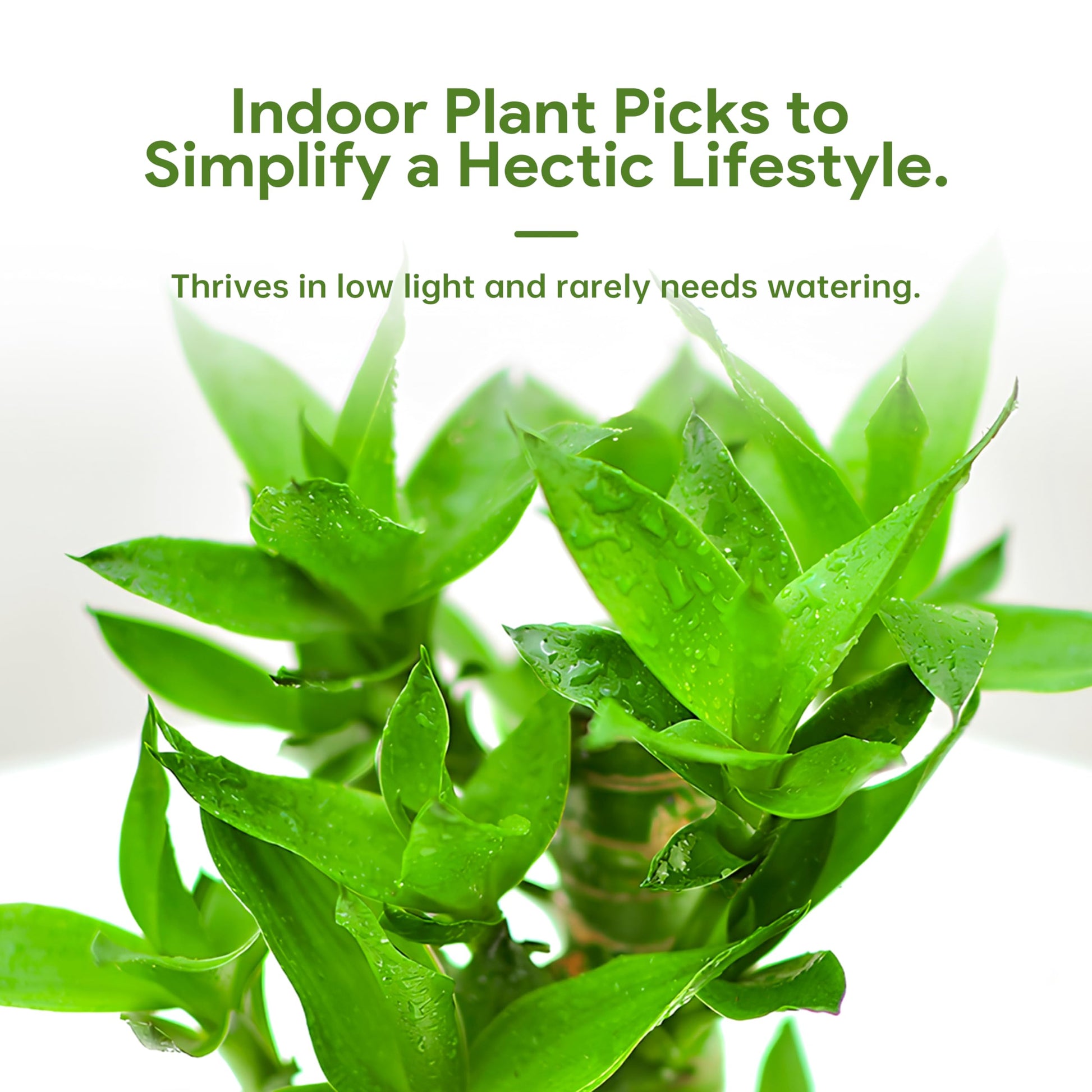 Bring positive energy and natural beauty to your home or office with this set of 3 live Lucky Bamboo plants. This bundle includes two 6-inch stalks and one 8-inch stalk, each carefully grown to ensure health and vitality. Known scientifically as Dracaena sanderiana, these plants are beloved for their resilience and symbolic meaning in Feng Shui, representing good luck, prosperity, and harmony. Whether youre a seasoned plant enthusiast or a beginner, these plants are incredibly easy to care for. They can be grown in water (with pebbles for support) or in soil, requiring only indirect light and occasional watering. Their elegant green stalks and lush leaves make them a versatile decoration for desks, countertops, bathrooms, or living areas. Ideal as a gift for friends, family, or colleagues, these plants arrive ready to display. Theyre also perfect for enhancing meditation spaces, yoga studios, or work environments where a calming influence is desired. Features: Includes 3 live plants: 2 x 6-inch stalks, 1 x 8-inch stalk Low maintenance: thrives in indirect light, moderate watering Adaptable to water or soil growth Symbolizes fortune, prosperity, and positive energy Enhances home, office, or garden d cor Arrives fresh and securely packaged Care Tips: Use filtered or distilled water to prevent chlorine damage. Avoid direct sunlight to prevent leaf burn. Change water weekly if grown in a vase. Trim yellow leaves to maintain plant health. Add these charming Lucky Bamboo plants to your cart today and enjoy a touch of natures goodness!