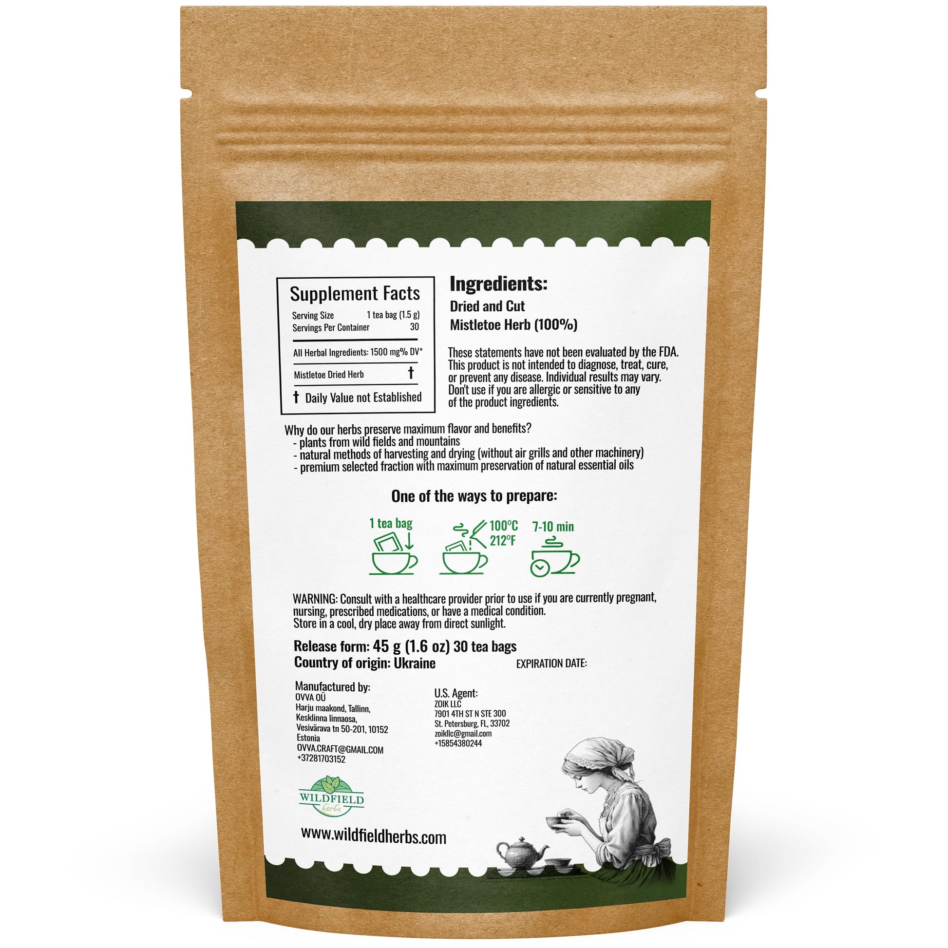 Q: Where does the Mistletoe Herb used in the tea originate from?A: The Mistletoe Herb used in this tea is sourced from Europe, where it is carefully grown and harvested to maintain high quality and aromatic properties.