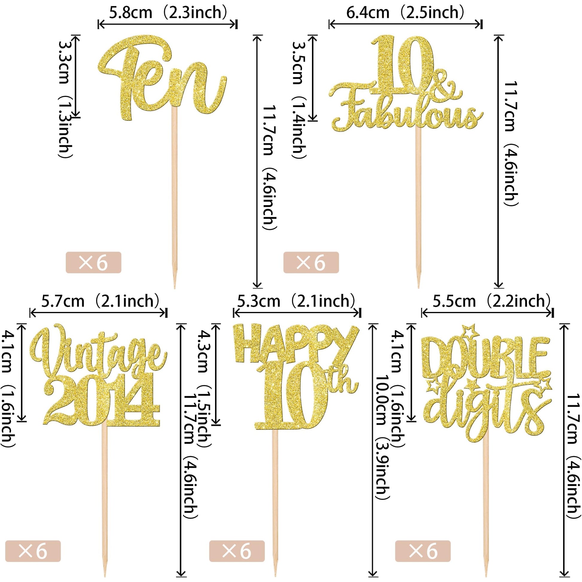 Vintage 2014 Theme 10Th Birthday Party Cupcake Decorations Perfect For Vintage 2014 Theme Party, 10Th Birthday Theme Party, 10Th Wedding Anniversary Theme Party,Cheers To 10 Years Theme Party Cupcake Decorations Supplies. Pack Of 30 Pcs,6 Pcs Of Each Design The Size Is 2.2*4.1 Inch / 2.2*4.7 Inch / 2.2*4.1 Inch / 2.5*4.1 Inch / 2.1*3.5 Inch ( With Stick ) Made Of High Quality Paper Card Stock And Food Grade Sticks,Thick And Thick And Sturdy. These Cupcake Toppers Are Single Glitter, The Back Is White, And They Are Intended For Decoration Only, Please Do Not Put Them In Oven Or Microwave. If The Item You Received Has Any Defects, Please Contact Us For Refund.We Will Deal With It Within 24 Hours.