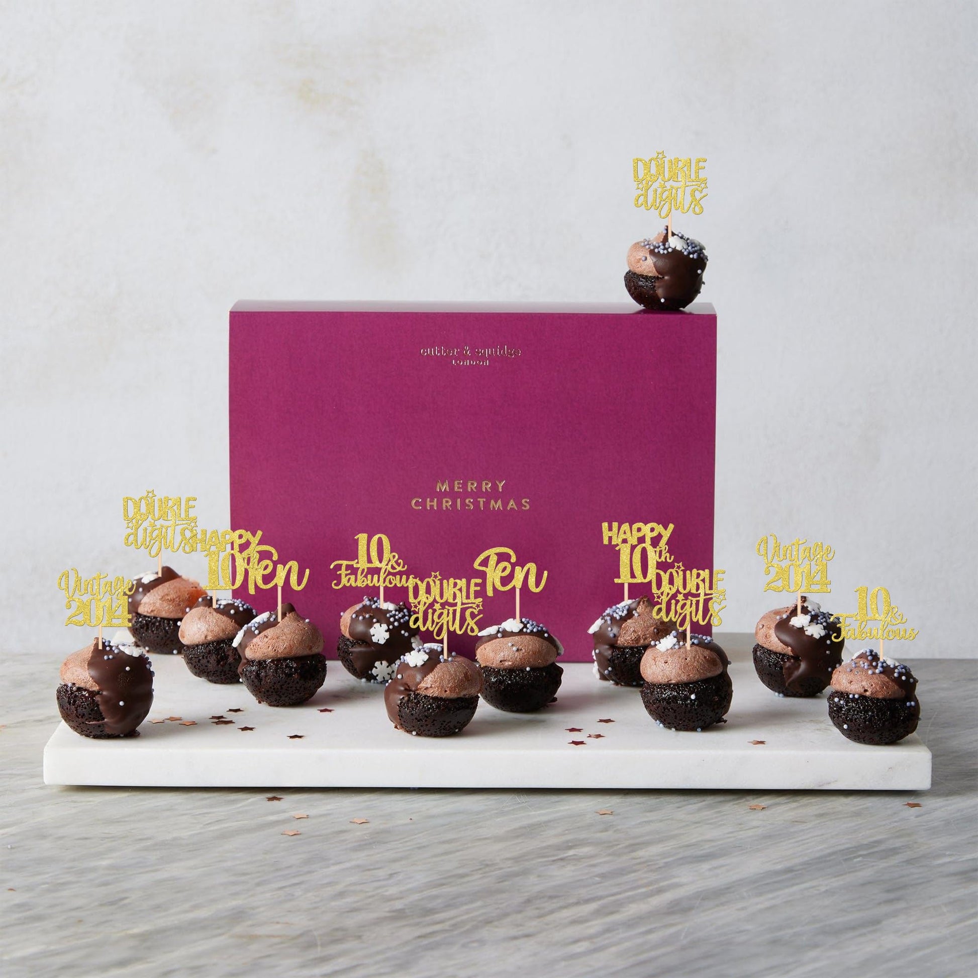 Q: What themes are these cupcake toppers suitable for?A: These cupcake toppers are perfect for vintage 2014 theme parties, 10th birthday celebrations, 10th wedding anniversaries, and any event celebrating 'cheers to 10 years'. They add a festive touch to various dessert displays.