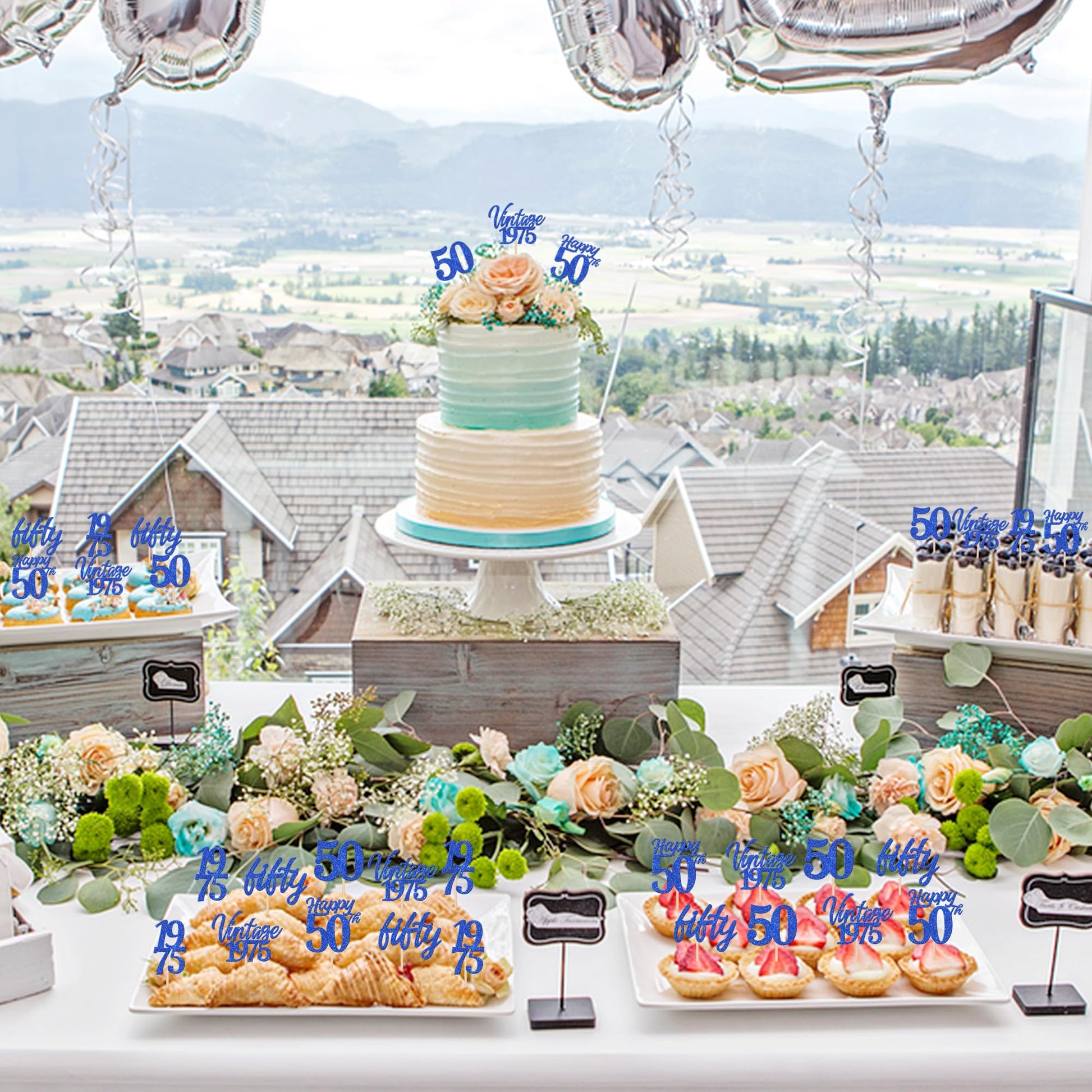 30Pcs 50Th Birthday Cupcake Toppers Cheers To 50 Vintage 1975 Fifty Cupcake Picks Happy 50Th Birthday Decorations For 50Th Wedding Anniversary Party Cake Decorations Supplies Blue Perfect For Happy 50Th Bithday Theme Party, Vintage 1975 Theme Party,Fifty Hello 50 Birthday Theme Party, 50Th Anniversary Theme Party,Cheers To 50 Years Theme Party Cupcake Decorations Supplies. Pack Of 50 Pcs,6 Pcs Of Each Design. The Size Is 2.2*4.5/ 2.7*4.5/ 1.3*4.7/ 2.4*4.5/ 2*4.5 Inch ( With Stick ) Made Of High Quality Paper Card Stock,Thick And Sturdy. These Happy 50Th Birthday Cupcake Toppers Are One Side Glitter, Another Side Is White, And They Are Intended For Decoration Only, Please Do Not Put Them In Oven Or Microwave. If The Item You Received Has Any Defects, Please Contact Us Immediately. We Will Deal With It Within 24 Hours.