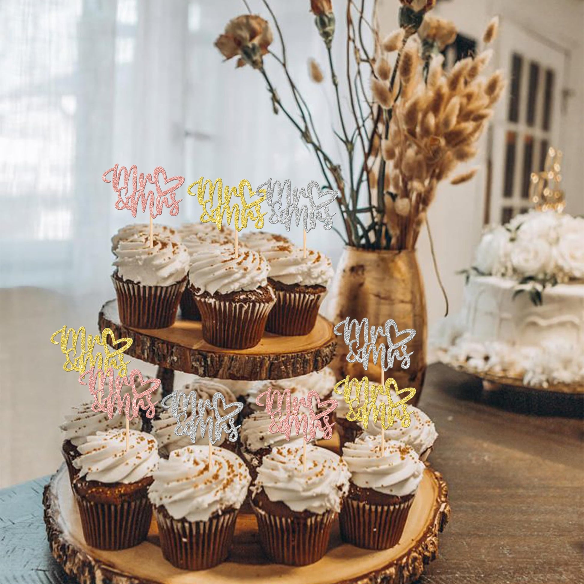 Mr & Mrs Cupcake Toppers With Heart For Wedding Enaggement Bridal Shower Party Cake Decorations Supplies Perfect For Wedding Engagement Theme Party, Bridal Shower Theme Party, Mr & Mrs Love Theme Party, Wedding Anniversary Theme Party, Birthday Theme Party Cupcake Decorations Supplies. Pack Of 36 Pcs . The Size Is 2.3*4.2 Inch ( With Stick ) Made Of High Quality Paper Card Stock And Food Grade Sticks,Thick And Sturdy. These Cupcake Toppers Are Single Glitter, The Back Is White, And They Are Intended For Decoration Only, Please Do Not Put Them In Oven Or Microwave. If The Item You Received Has Any Defects, Please Contact Us For Refund.We Will Deal With It Within 24 Hours.