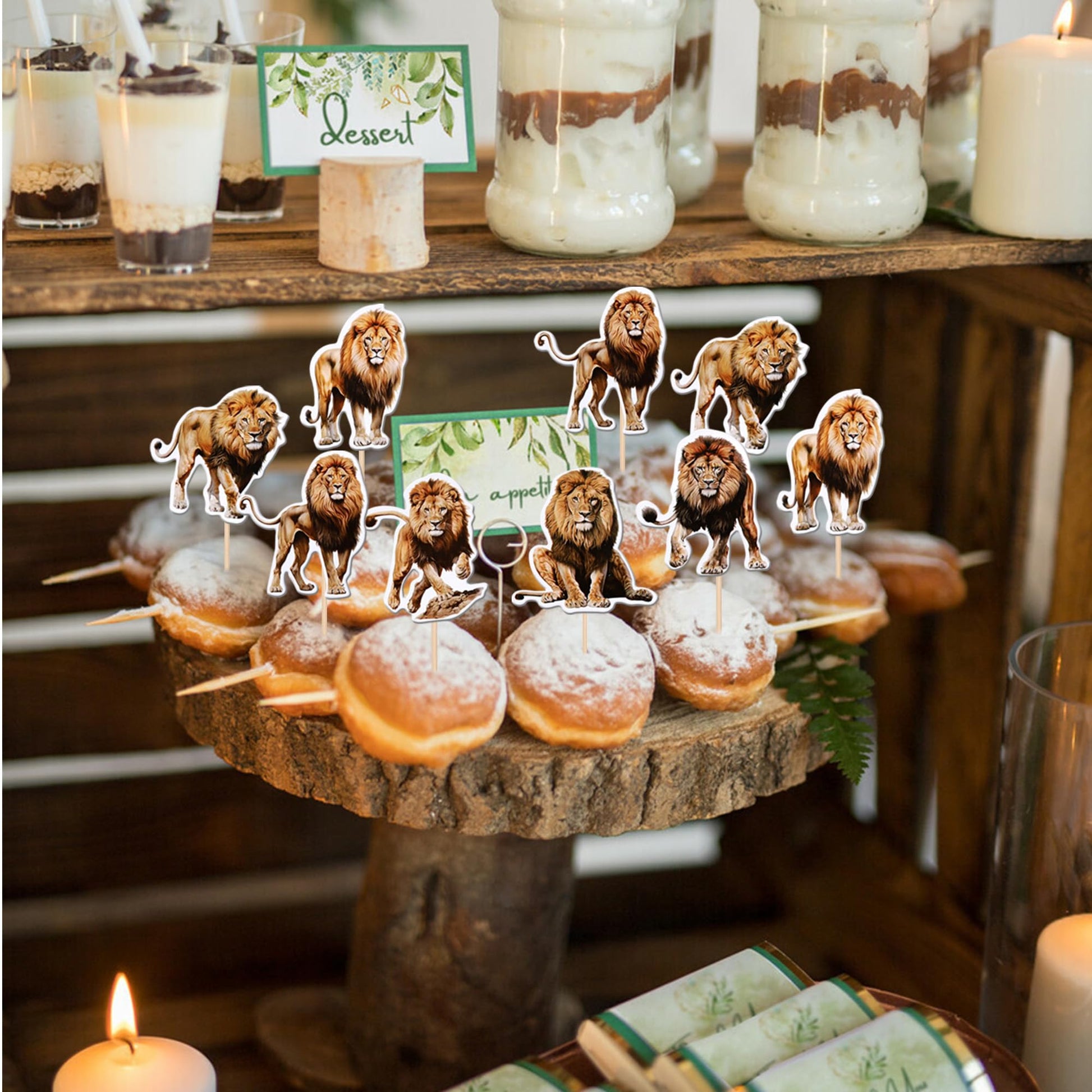 Q: What themes are these cupcake toppers suitable for?A: These cupcake toppers are perfect for various themes, including lion theme parties, prairie animals theme parties, jungle safari animals theme parties, baby showers, and animal-themed birthday parties.