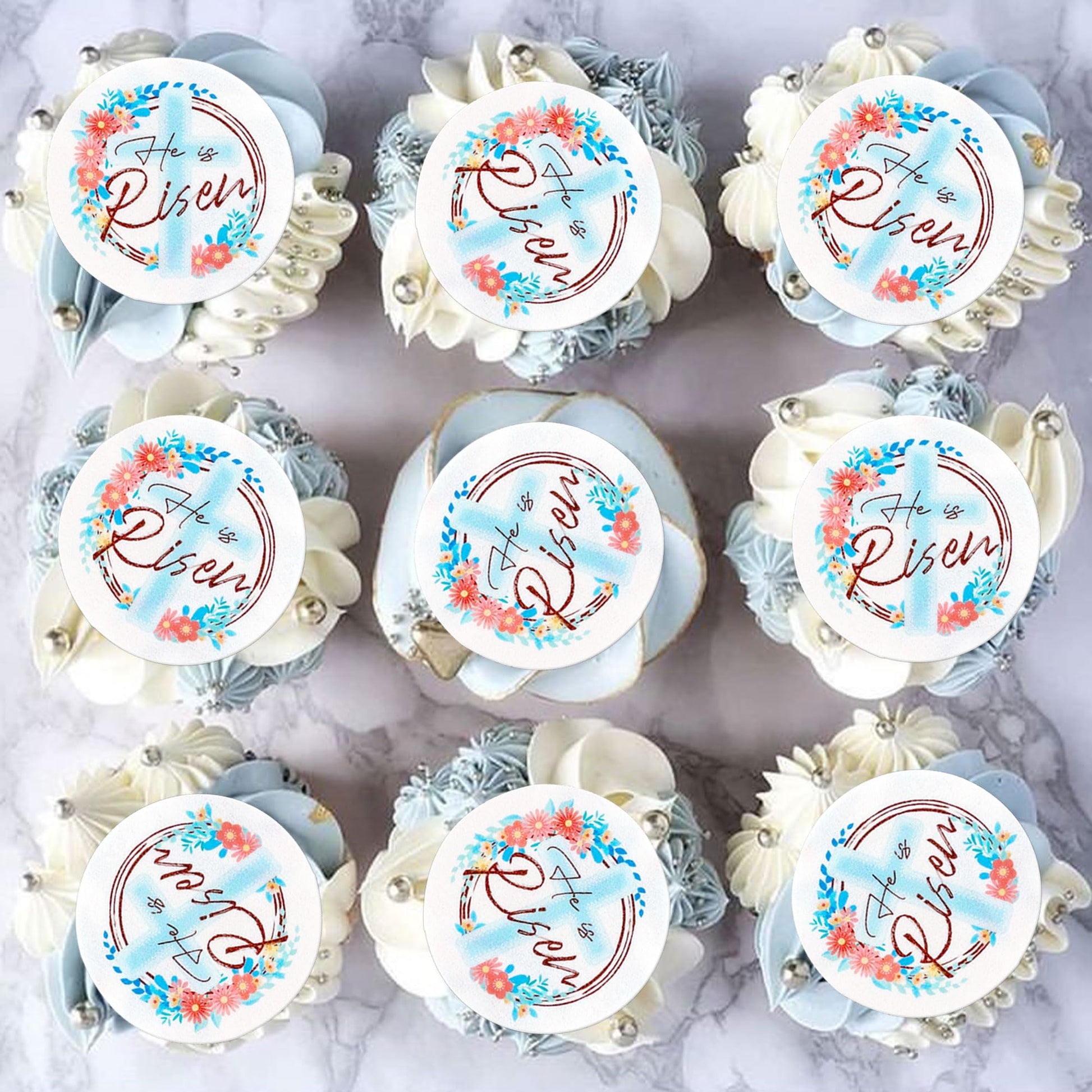 Q: What are the materials used in the 40 Pack Edible Happy Easter Cupcake Toppers?A: The cupcake toppers are made of edible wafer paper, which is non-toxic and safe for food. They are durable, lightweight, and designed to retain their vibrant colors without fading.