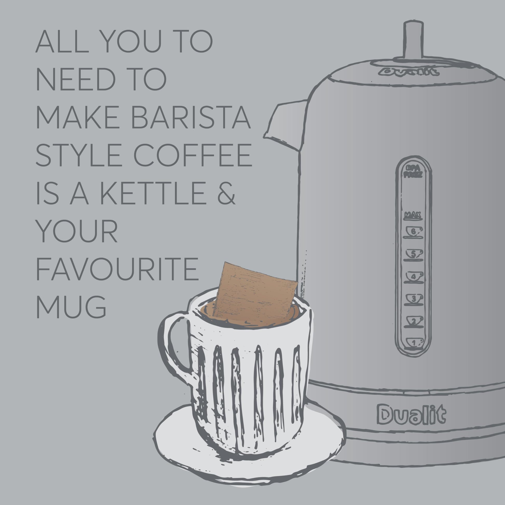 Q: Are the coffee bags and sachets environmentally friendly?A: Yes, Dualit’s Compostable Coffee Bags are made from compostable materials suitable for industrial composting. The sachets are recyclable in plastic waste streams at your local supermarket, making them an eco-friendly choice.