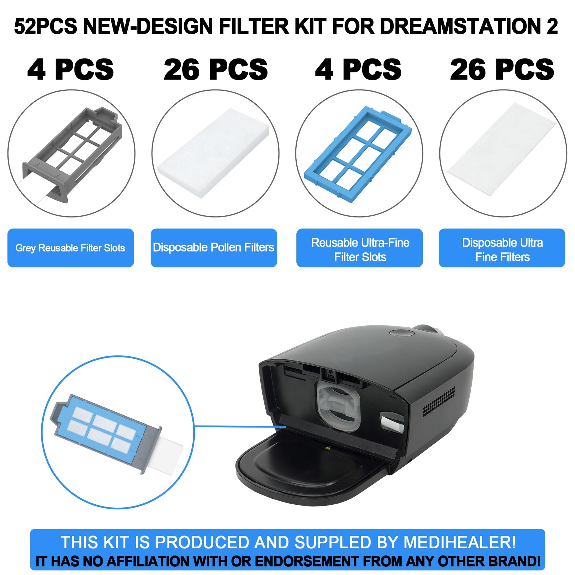 52PcS cPAP Filters for Dreamstation 2- Replacement Filters compatible with Dreamstation 2: Includes 4 Preassembled Filters 22 Pollen Filters 22 Ultra-Fine Filters,Reusable Supplies by Medihealer