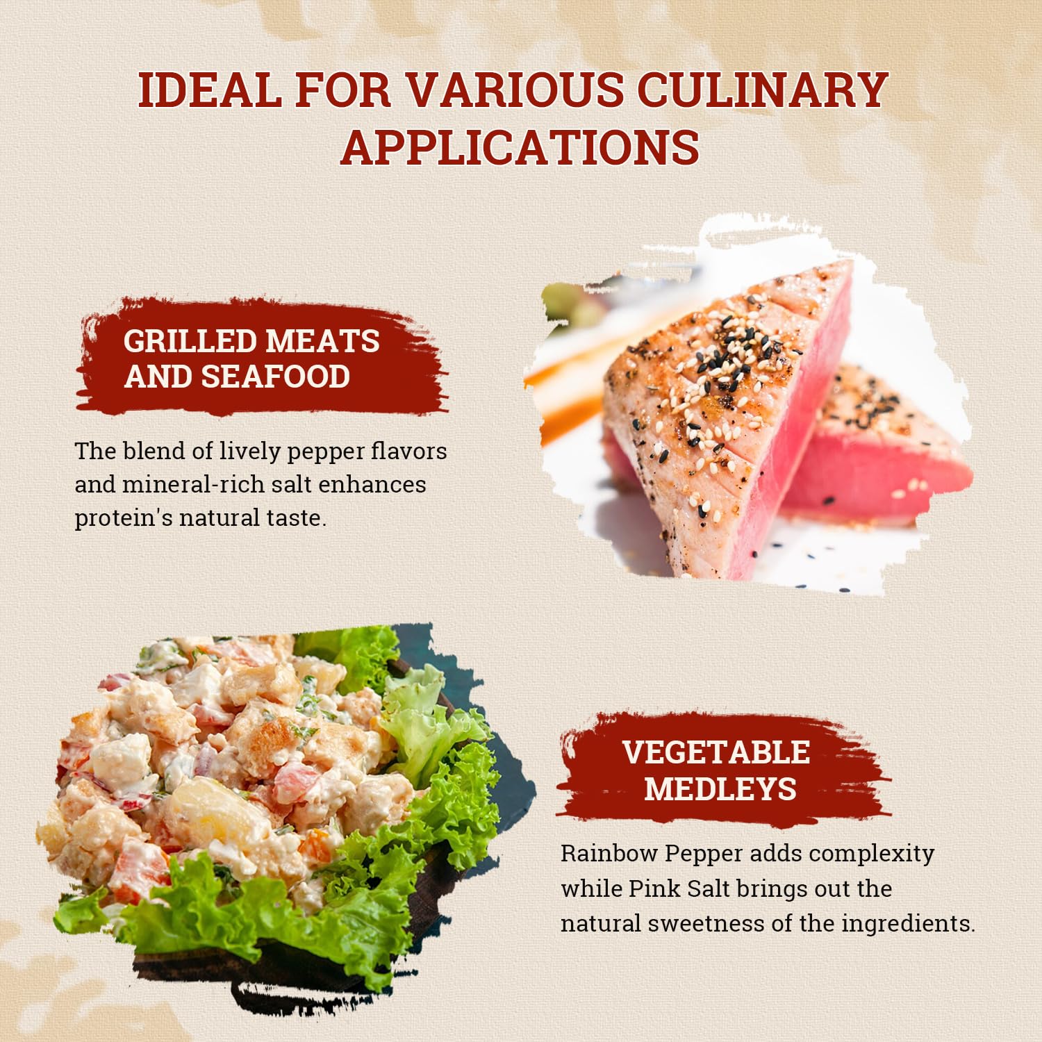 - Q: What are the key benefits of using 52USA Rainbow Peppercorn Blend and Himalayan Pink Salt? A: The 52USA Rainbow Peppercorn Blend enhances the flavor of meat, soups, and vegetables with its distinctive spicy bite, while Himalayan Pink Salt serves as a healthier alternative to common table salt, free from additives and preservatives.