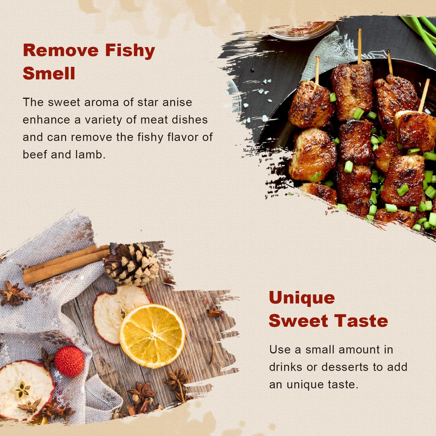 • Q: What are the uses of Star Anise in cooking? A: Star Anise is a versatile spice commonly used in a variety of recipes, including soups, stews, and baked goods. It adds a unique flavor to teas and can also be used as a garnish for drinks and roasted meats due to its visually appealing star shape.