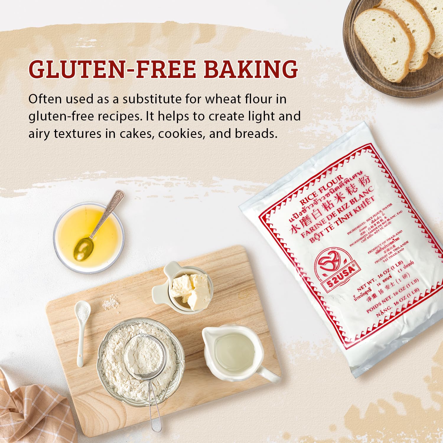 High Quality Raw Materials: 52Usa Rice Flour Selection Of High-Quality Thai Rice Refined, White Color, Fine Powder Grain | Best Taste: The Taste Is Smooth, Soft And Waxy, The More Chewing, The More Fragrant. This Versatile Rice Flour For Baking And Cooking Adds A Unique Texture Profile To A Wide Array Of Recipes, Enhancing The Mouthfeel Of Every Bite | Real Thai Quality: From Thailand, Where The Best Glutinous Rice Grows. Rice Flour Is One Of Essential Ingredients In Asian Cooking, Used To Thicken Various Oriental Dishes. Made From Rice, The General Purpose Is Similar To Flour | Variety Of Uses: 52Usa Rice Flour Has Endless Culinary Possibilities. Suitable For Baking, Breads, Coatings, And As A Thickening Agent In Sauces And Soups. You Can Also Use Rice Noodles In Your Cakes, Cookies, Muffins, Pancakes, Noodles And More! | Excellent Process Grinding: Ground In Traditional Water Mill, Which Yields Extra Fine Flour. We Bring You The Finest, The Purest, Best Quality, 100% All-Natural Rice Flour