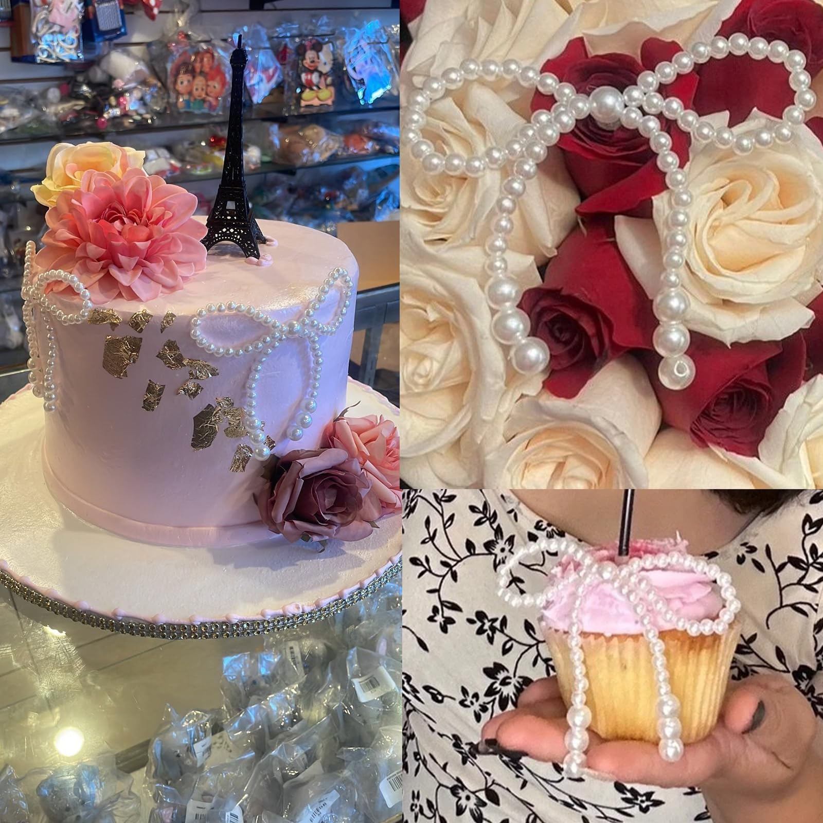 Q: What material are the Pearl Bow Cake Toppers made from?A: The Pearl Bow Cake Toppers are crafted from high-quality, glossy artificial pearls, ensuring a luxurious appearance and safe use for any occasion.