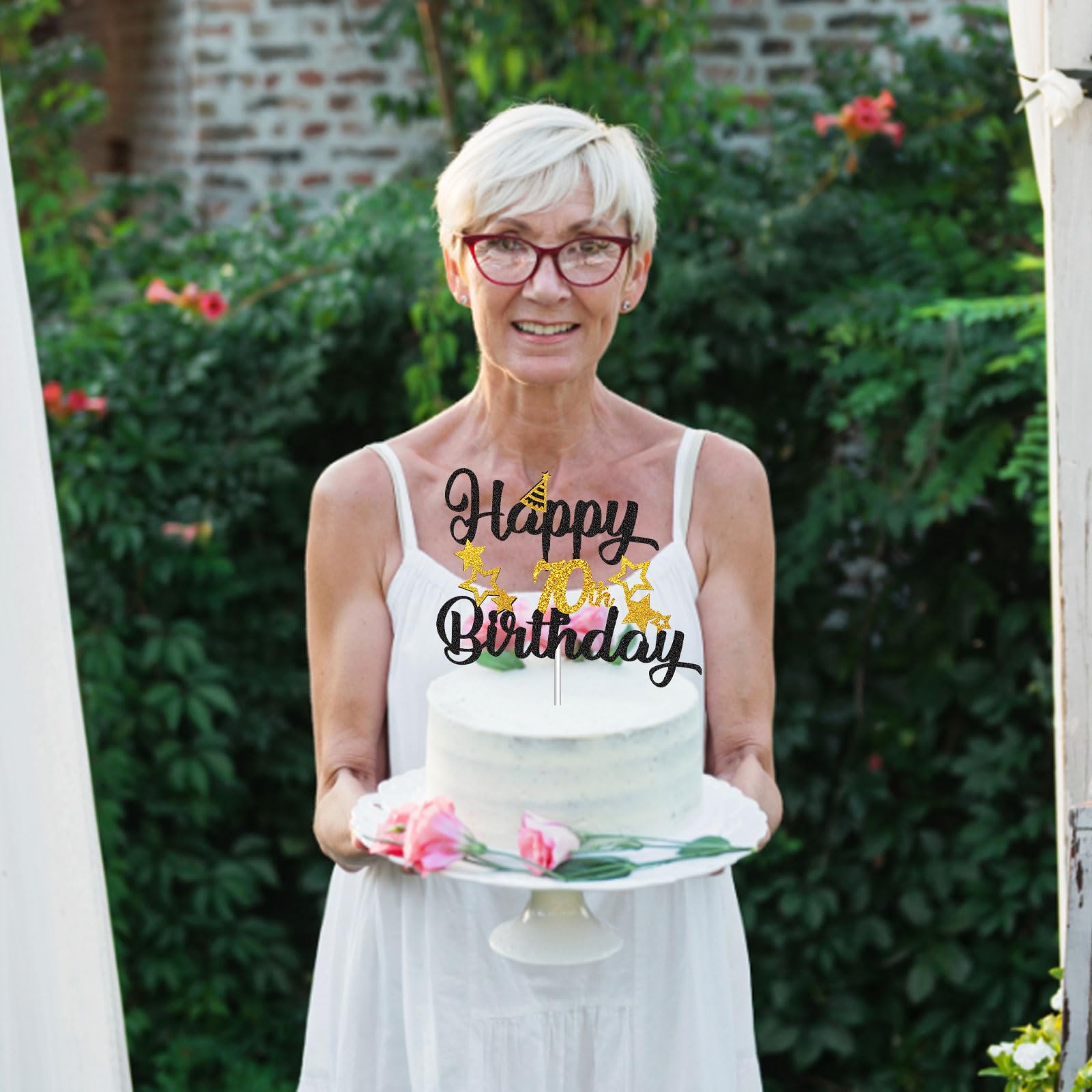 Exactly What You Needed For 70Th Birthday Party Supplies! You Will Get 1 Pcs Black And Gold Glitter Cake Topper Decorated With Golden Stars. Happy 70Th Birthday Cake Topper Material: They Are Made Of Glitter Powder Paper Which Environmentally Friendly Paper And Are Very Shiny. Size: The Big Cake Toppers Are Approx. 6''(15Cm) Wide And 4.7''(12Cm) High. Perfect For 70Th Birthday Party Decorations Personalized Birthday Cake Topper Perfect For Happy 70Th Birthday Party Cake Decorations, Bright Color Cake Topper Will Sparkle Your Cake To Stand Out At The Party. You Can Put Them On Cakes, Cupcakes, Ice Cream, Fruits, Pie, Dessert, Cheese Or Any Dish And Food You Want To Decorate. The Glitter Cake Toppers Are Provided Unmounted, So You Can Make The Best Decision On The Stick Height.(Included Glue Point And Plastic Rod) Afer-Sales Service If Any Damage Is Caused During Transportation, Please Apply For Replacement.