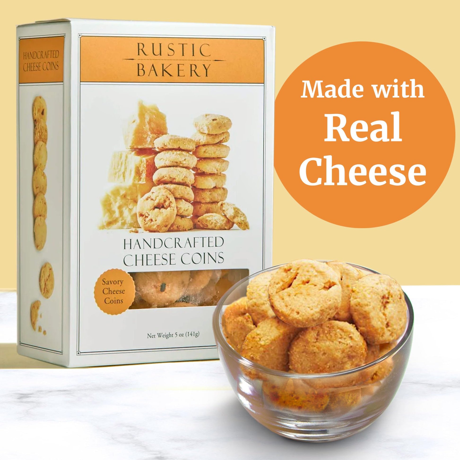 Q: Are there any cheese options included in the basket?A: Yes, the basket features Cheese Bros Round Gouda and Private Label Farmstead Gourmet Natural Cheddar, paired with Olive Oil Sea Salt crackers. In warmer months, these are substituted with Rustic Bakery Savory Cheese Coins and Blue Bow Honey Pecan Dipping Mustard.