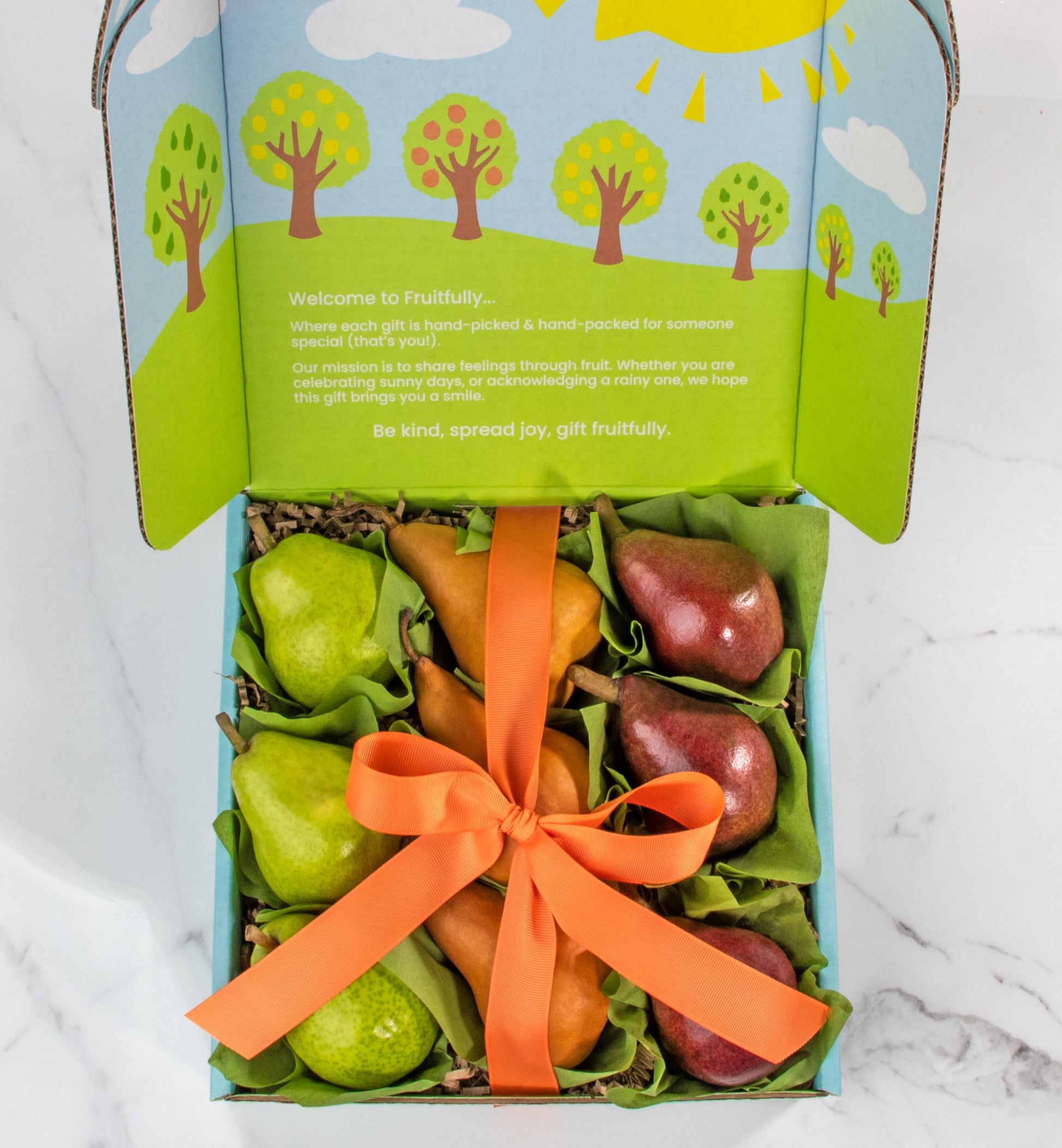 - Q: Are there any allergens in this fruit gift? A: This fruit gift contains only pears and does not include common allergens. However, always check for individual sensitivities.