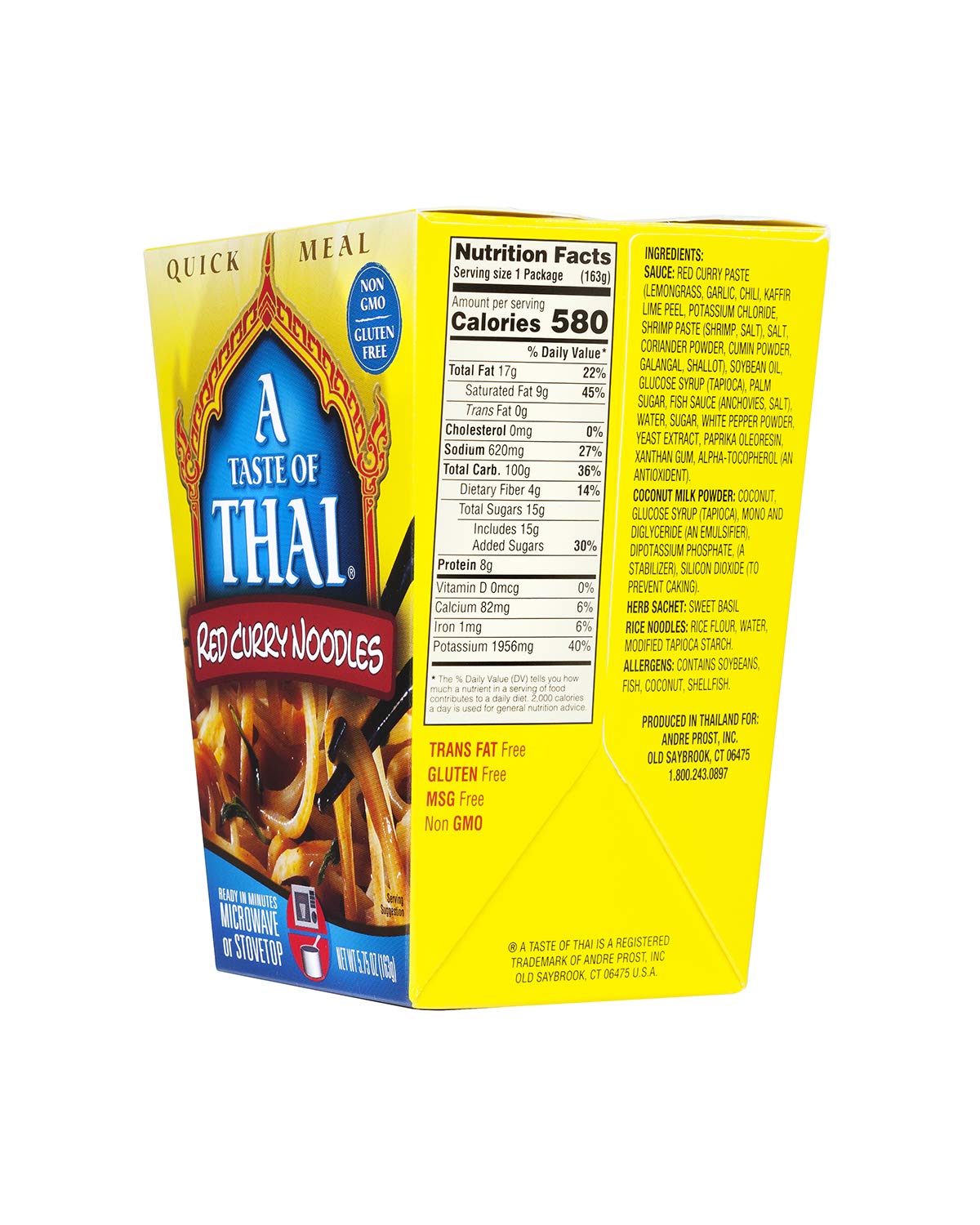 A Taste Of Thai Red Curry Noodles - 5.75Oz Pack Of 6 Heat & Eat Instant Noodles Flavored With Classic Thai Sauce | Gluten-Free | Ideal Vegan Meal | Perfect Side For Chicken Fish & Meat Entrees