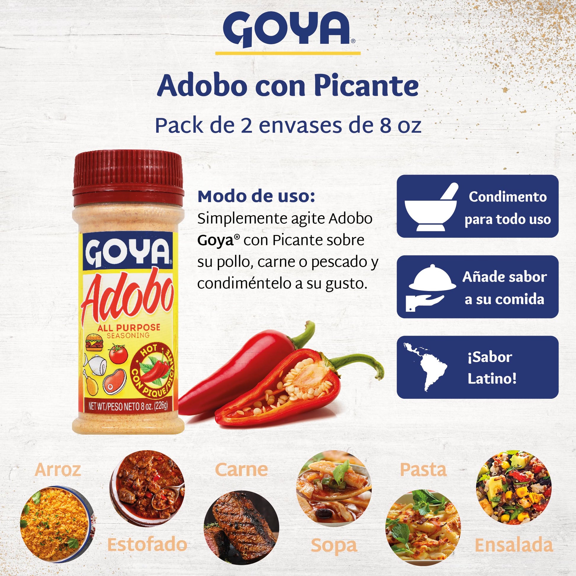 Adobo All Purpose Seasoning With Hot Pepper By Goya, Poultry, Seafood, Meat, And Vegetable Seasoning, Fat Free And Calorie Free Latin Spice Blend, Mexican Seasoning, Pack Of 2, 8Oz. Bottles
