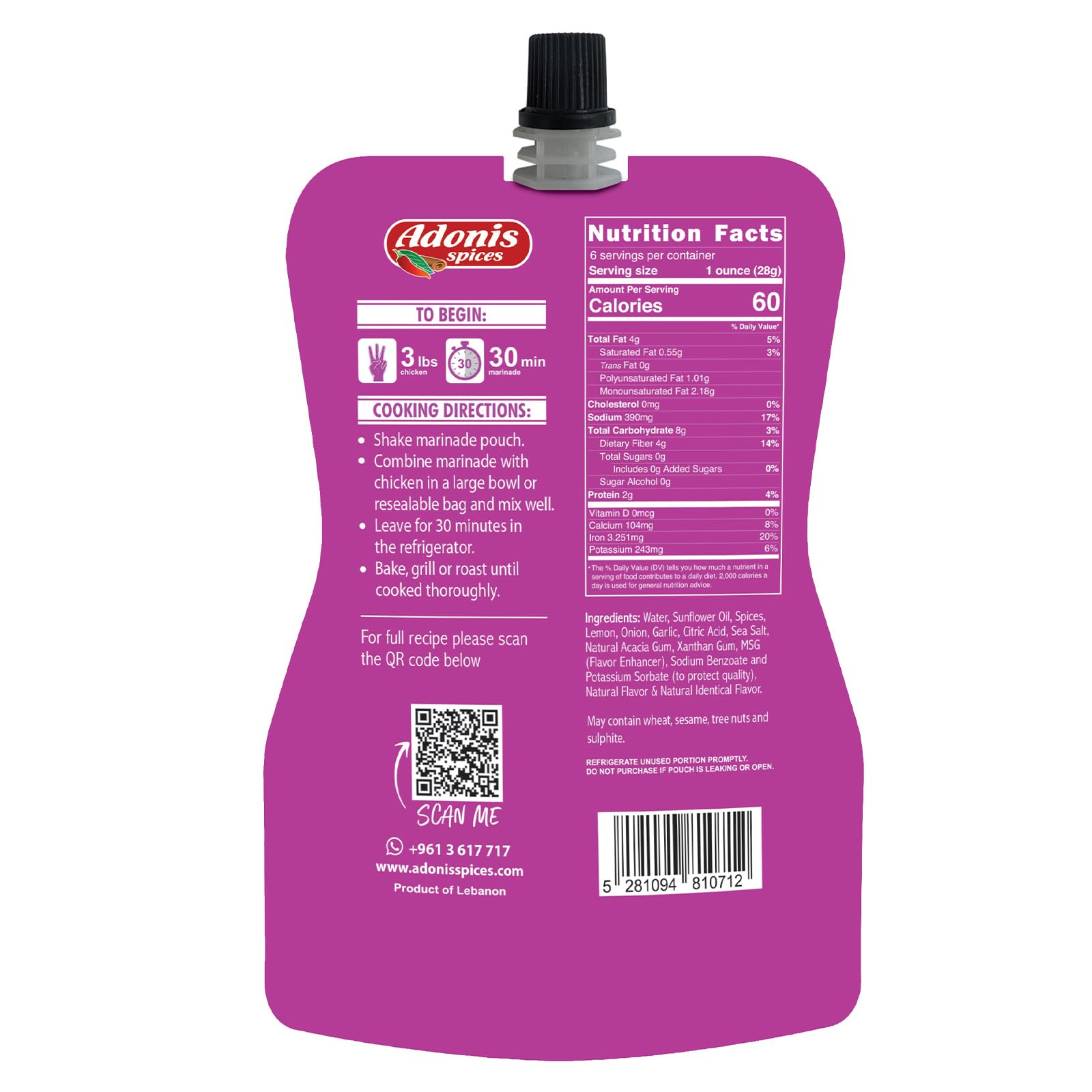 Quick Marinades from Adonis Spices, Product of Lebanon. GMO Free Ready to Use Marinade Pouches, Just Shake and Pour Over to make your favorite Recipe