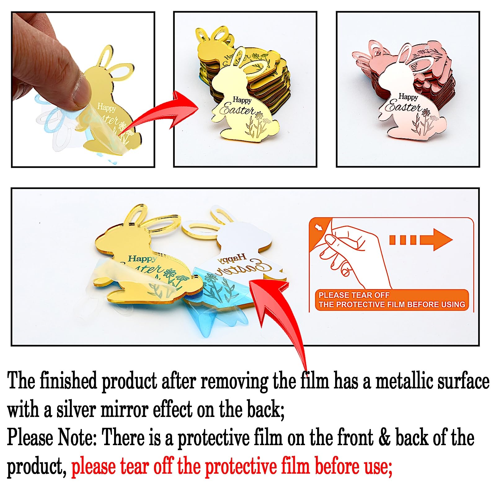 Q: What materials are the AiQi Bakes Easter Bunny Cupcake Toppers made from?A: The AiQi Bakes Easter Bunny Cupcake Toppers are made from high-quality acrylic material, which provides a luxurious metallic finish and sturdy construction for reliable use.