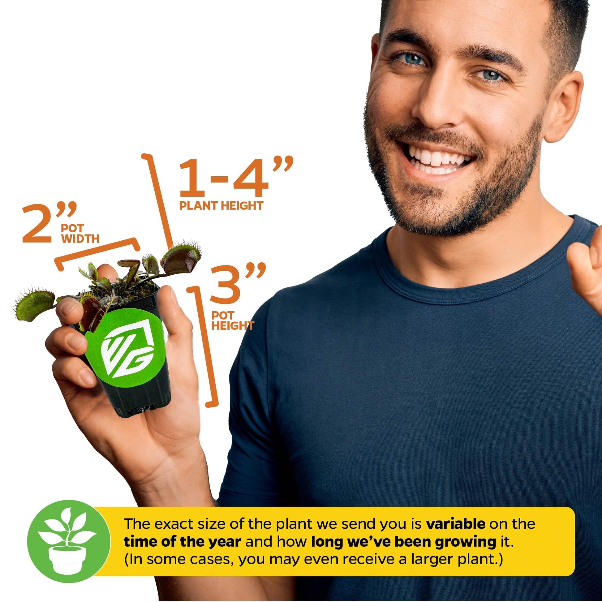 - Q: What size can I expect my Akai Ryu Venus Fly Trap to reach? A: The Akai Ryu Venus Fly Trap typically reaches a mature size of under 6 inches. When it arrives, it will be in a pot and stand approximately 1 to 4 inches tall, ready to enhance your plant collection.
