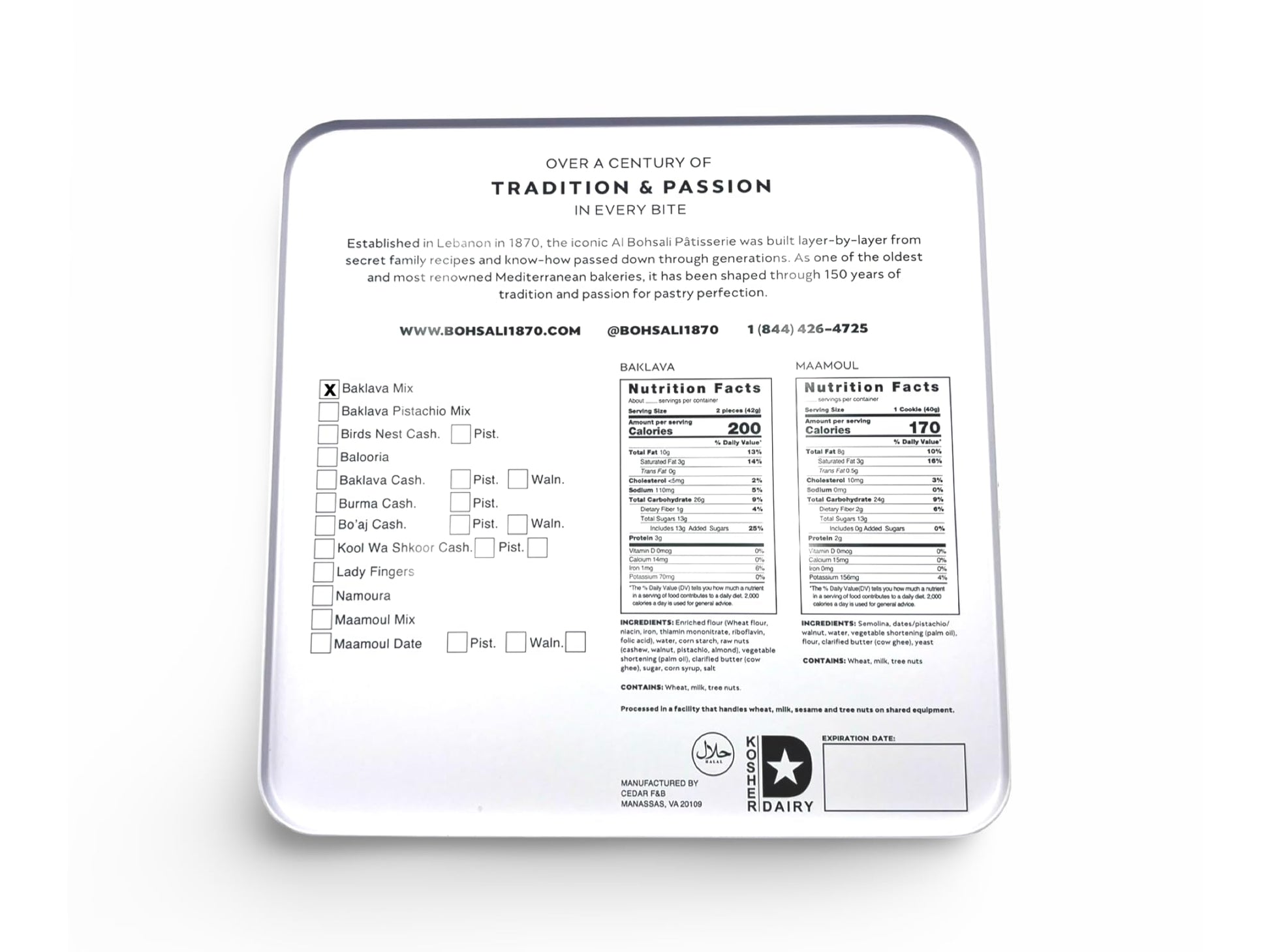 Al Bohsali 1870 - Premium Mediterranean Baklava Assorted Mix (43 Count)