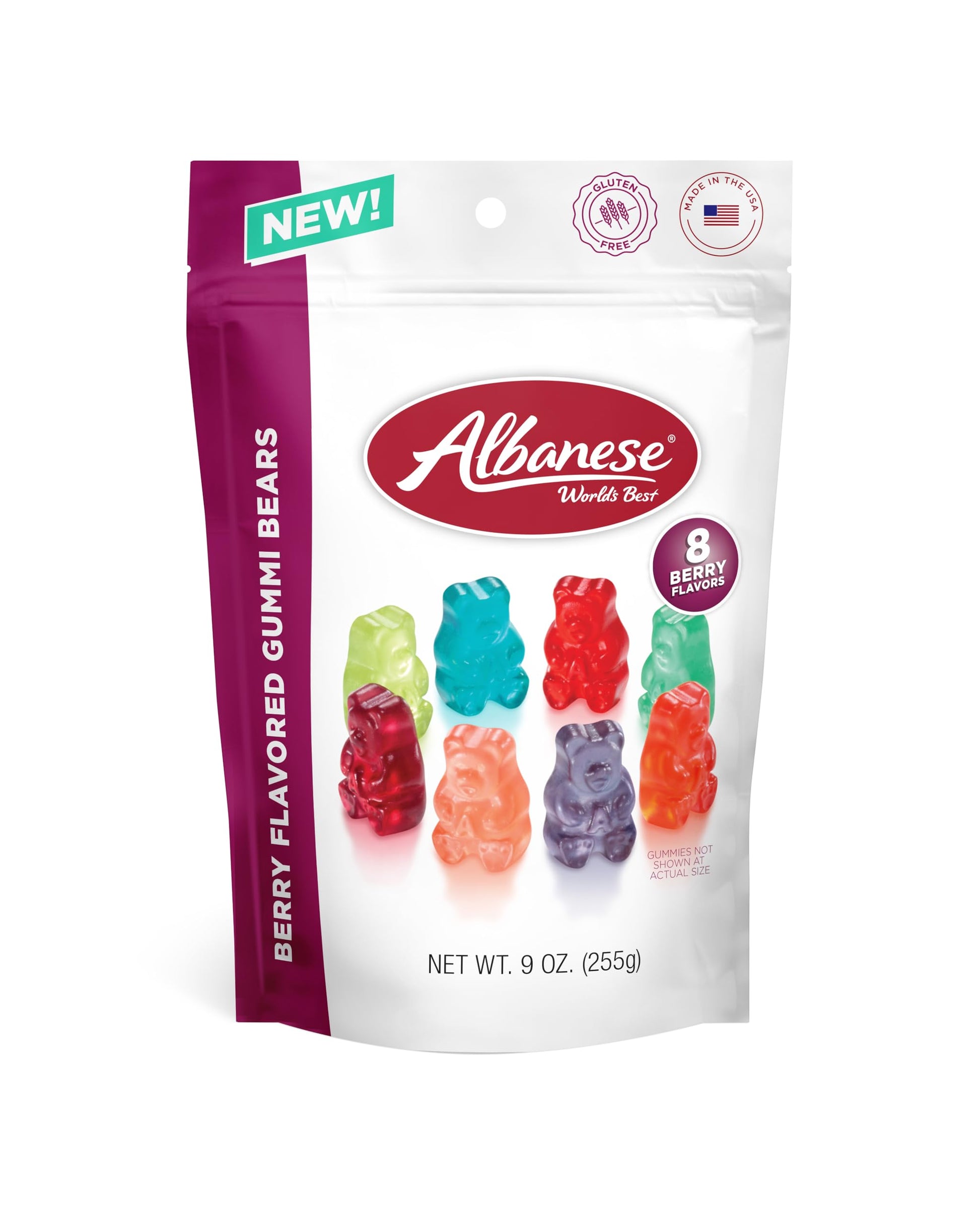 Q: What flavors are included in Albanese World's Best Berry Flavored Gummi Bears?A: Albanese World's Best Berry Flavored Gummi Bears come in an exciting variety of 8 big flavors: Strawberry, Cherry, Blue Raspberry, Red Raspberry, Wild Berry, Berry Punch, Green Grape, and Cherry Berry.
