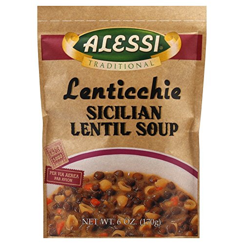 Q: What ingredients are in Alessi Lenticchie Sicilian Lentil Soup?A: Alessi Lenticchie Sicilian Lentil Soup is an authentic Italian soup mix that includes a blend of beans, vegetables, pasta, and select spices, offering a hearty and flavorful experience.