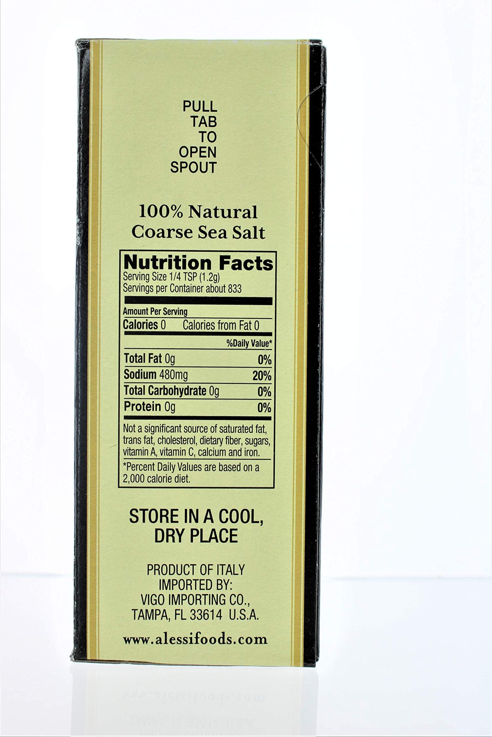 Alessi Sea Salt comes from the cool, blue waters of the Mediterranean Sea using the oldest method of obtaining salt, evaporation. Sea water is transferred through a series of evaporation ponds which successively eliminate other elements. The hot, dry climate and gentle breezes hasten the evaporation process leaving behind only pure white crystals and other valubale trace minerals not found in regular salt. The fine crystals of Alessi Sea Salt will enhance the flavor of any food exactly as those whoe resided in antiquity. Made naturally from only the sea and the sun..