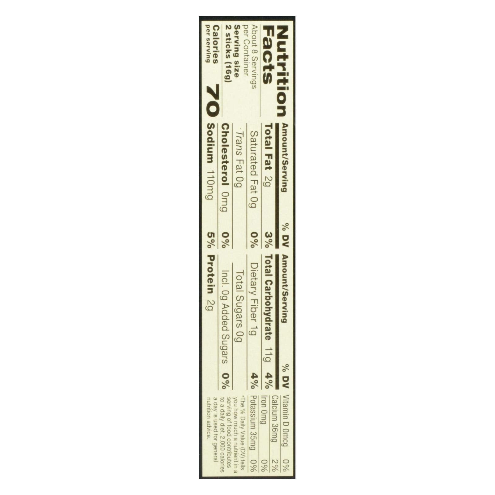 Imported. Made with extra virgin olive oil. The origins of breadsticks date back to 1679 when a baker named Brunero Antonio, from Turn Italy, was faced with the task of developing a bread suitable for the sick child of a king. Through much trial and error, Mr. Antonio developed crisp and delicate fingers of bread that we recognize today as breadsticks. Our imported Alessi Breadsticks are made with the same grissini torinesi (Turin style) recipe of centuries ago. We use only the highest quality ingredients, including extra virgin olive oil. Enjoy Alessi Breadsticks as an anytime snack. Product of Italy.