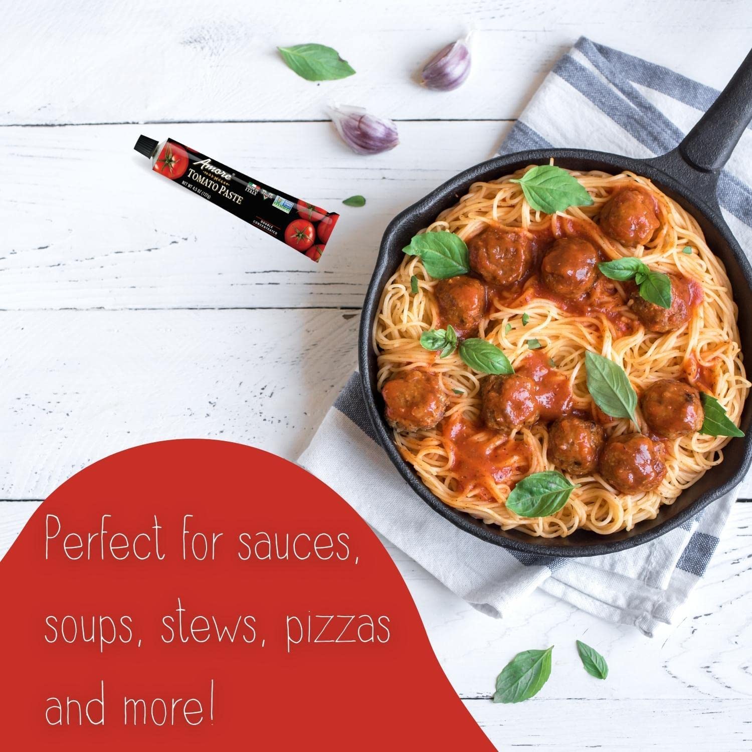 Flavor:Tomato | Size: 4.5 Ounce (Pack of 12) In 1930, at the impressionable age of ten, Mario Foah tied on an apron and began awaiting his mother in the kitchen of their home in Naples, Italy. The oldest of five children, he loved to cook for his younger siblings. His love of the kitchen became a lifelong passion. Many years later after he moved to New York, Mario dreamed of bringing the kind of meals his mother cooked to a much larger audience. He started his own company, and chose AMORE as the brand name because, “Love is universal and nobody is against it.” Mario returned to Italy often in search of great products and in 1978 discovered concentrated paste tubes made from fresh Italian ingredients. Having seen nothing like it in the USA, he knew that it was exactly the type of product that he could be proud to sell.