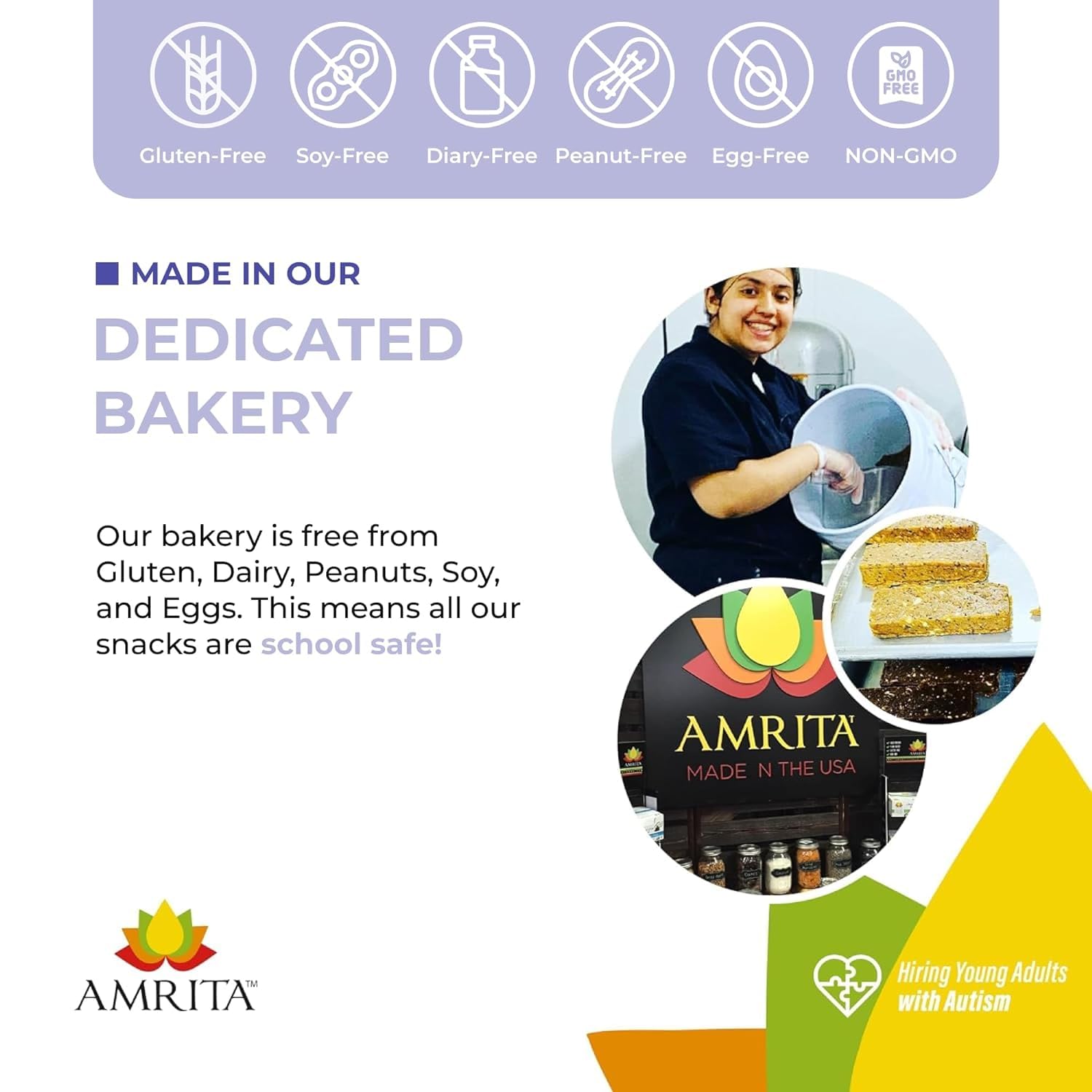 Q: Is Amrita a family-run business?A: Yes, Amrita Foods is a family-run business that has been operating since 2012. The company focuses on providing healthy snacks while also supporting individuals with autism through employment opportunities.