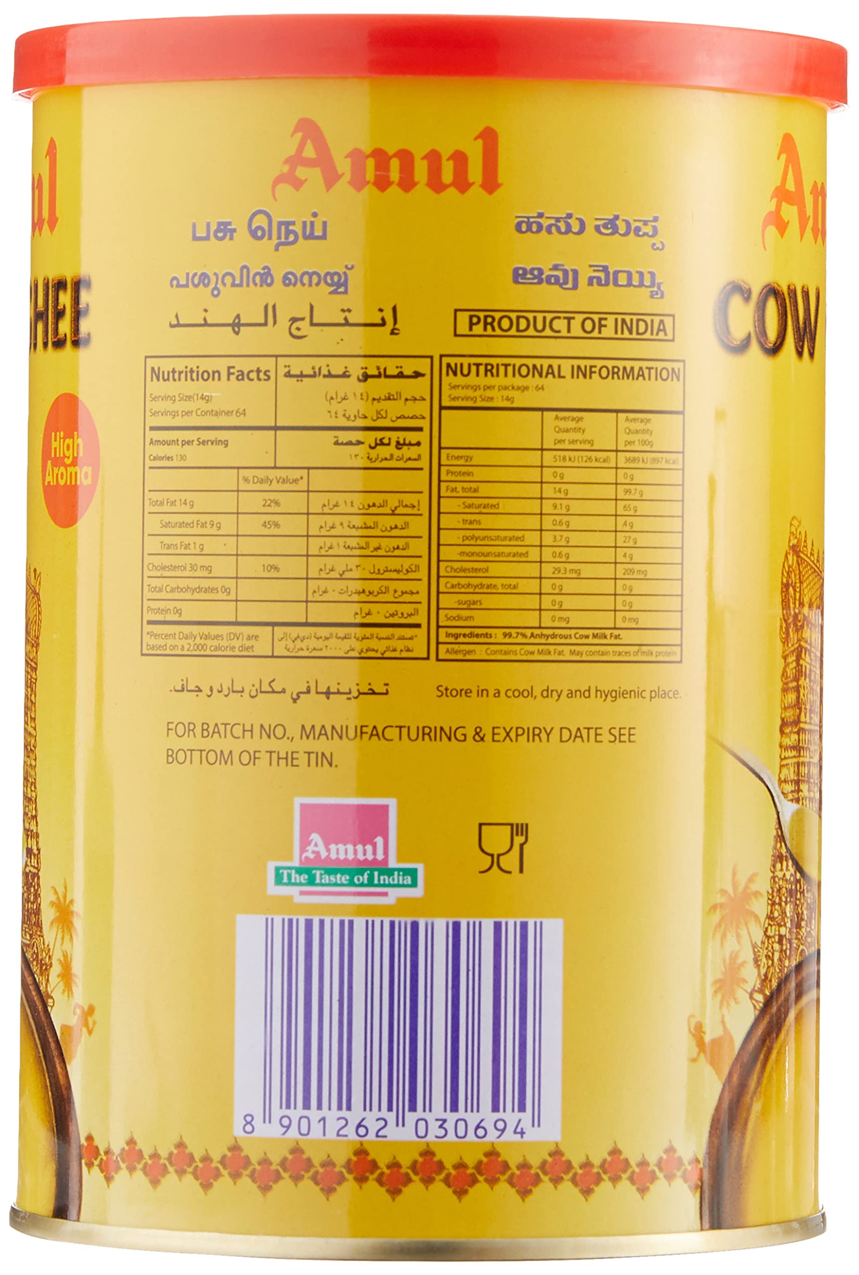 - Q: Is Amul Cow Ghee suitable for people with lactose intolerance? A: Yes, Amul Cow Ghee is clarified butter and contains very low levels of lactose. Most people with lactose intolerance can tolerate it, but it's always best to consult with a healthcare provider if you have concerns.