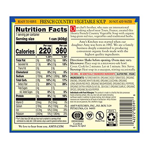 View compareAmy’S Soup, Vegan Hearty French Country Vegetable Soup, Gluten Free, Made With Organic Rice, Vegetables And Herbs, Canned Soup, 14.4 Oz