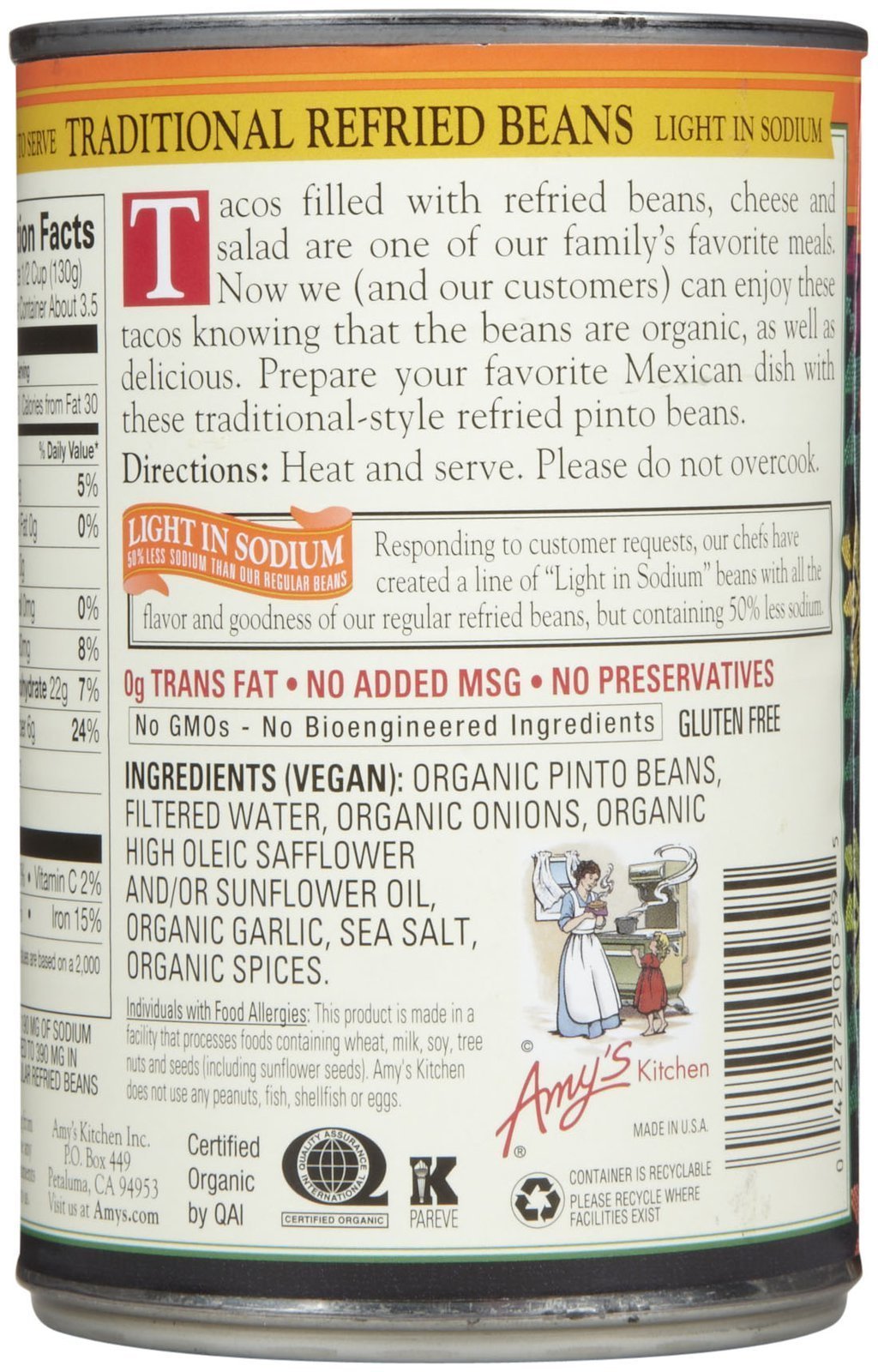 Amy'S Beans Refried Traditional Low Sodium Organic, 15.4 Ounce