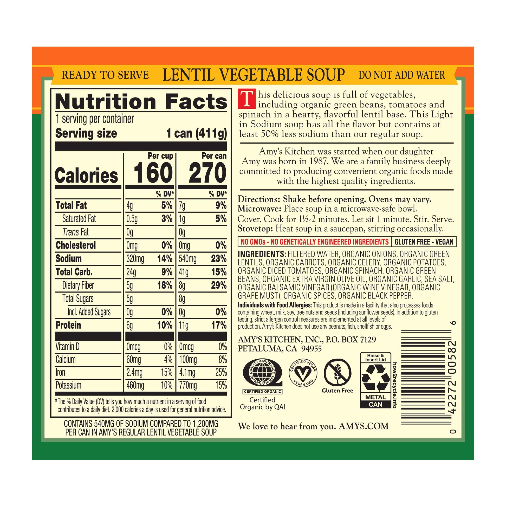Amy'S Organic Lentil Vegetable Soup, Light In Sodium 14.5 Oz.