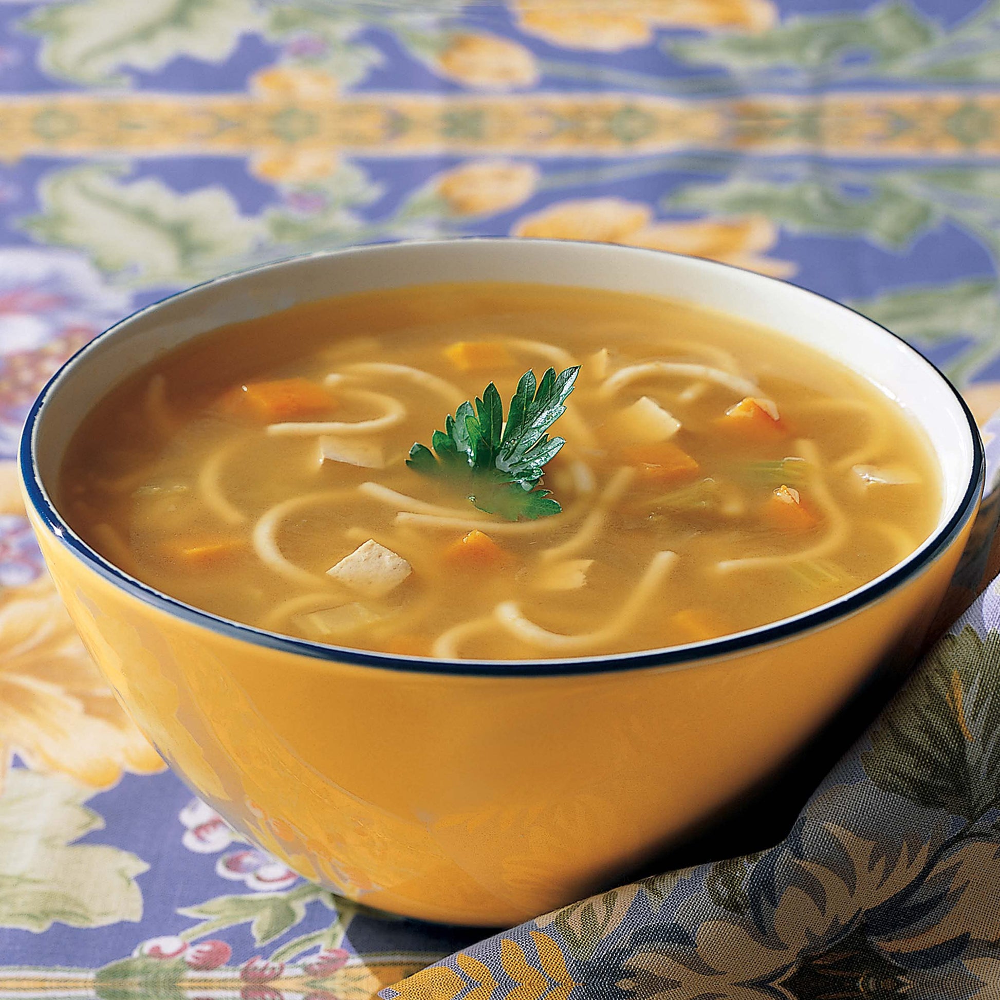 Q: What are the nutritional benefits of this soup?A: Each serving of Amy's No Chicken Noodle Soup provides 9g of plant-based protein and 3g of fiber, making it a nutritious choice for a healthy lunch or dinner.