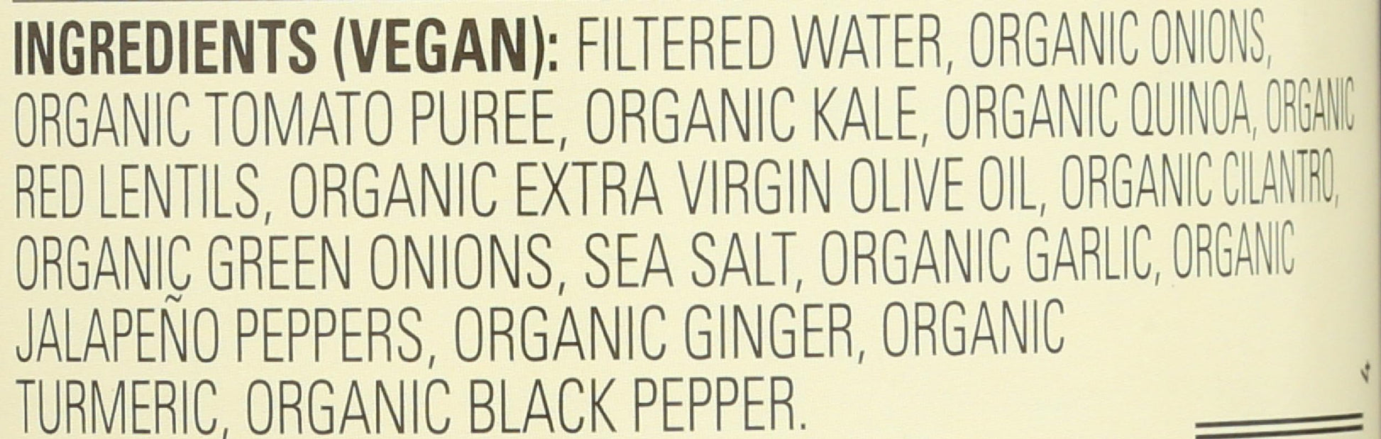Packed with plant power, this tasty soup is so hearty that it’s a meal on its own. We make Amy’s Quinoa, Kale & Red Lentil soup from scratch with the highest quality organic ingredients, taking our time to cook the grains and veggies with organic cilantro, green onions and a bit of jalapeño pepper for a rich, complex flavor. It’s ready to eat in minutes—just heat and serve. A great source of plant based protein and fiber, this robust soup is also gluten free, dairy free, soy free, corn free, tree nut free, vegan and certified kosher. Since 1987, we at Amy’s Kitchen have produced delicious, organic, convenient foods for people who are sometimes too busy to cook. Amy’s is a family-run business, and we supervise every aspect of our business and take pride in customer satisfaction. All the fruits, vegetables and grains we use are grown without the use of insecticides, GMOs and other harmful chemicals. We prepare these ingredients with the same careful attention in our kitchen as you would in your own home for high-quality, home-style vegetarian and vegan meals. No meat, fish, shellfish, poultry, eggs or peanuts are ever used in any Amy's products. Even though you're heating up our meals in your home, we want each bite to taste like you're a guest in ours.