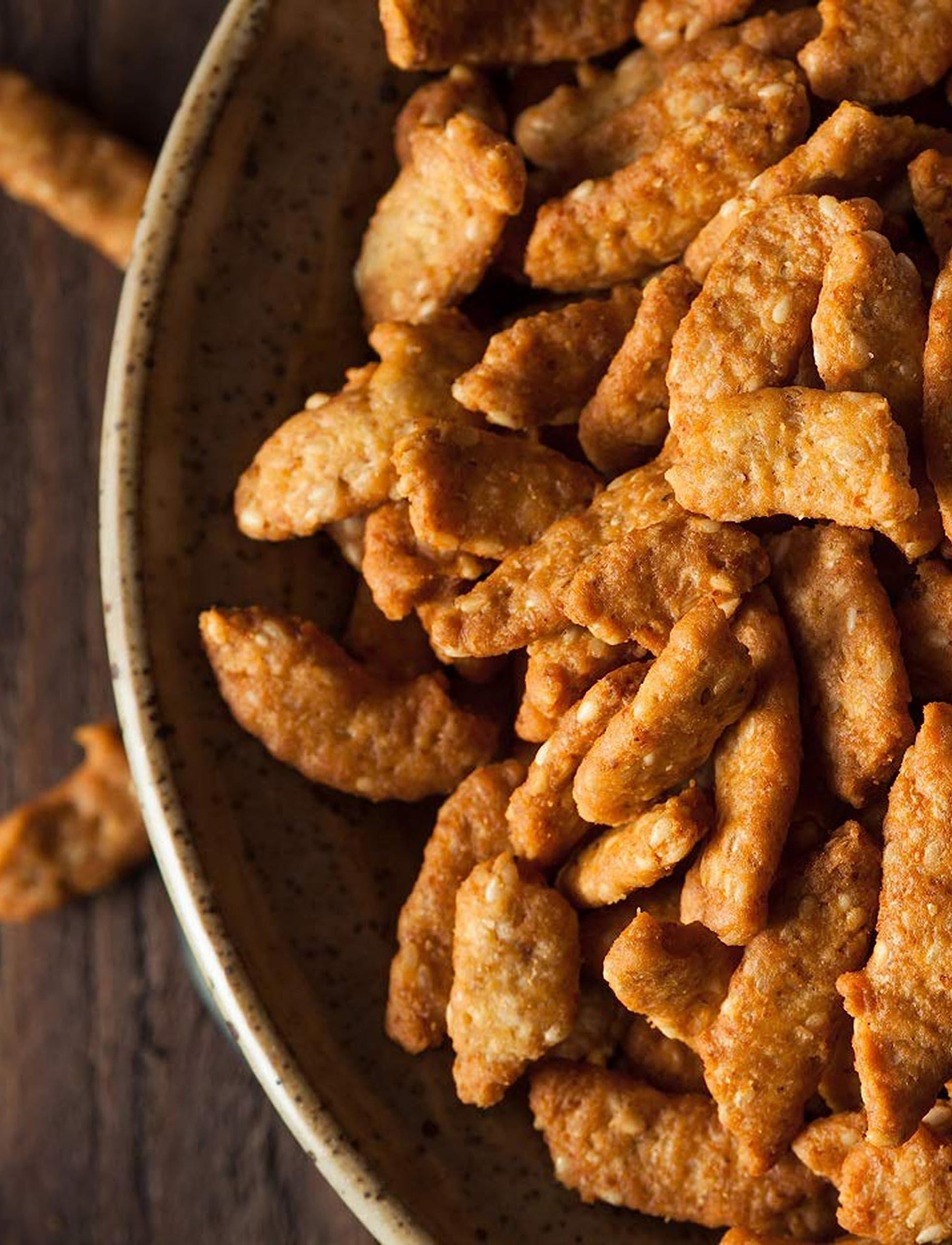 Q: Can I use Wide Sesame Sticks in recipes?A: Absolutely! Wide Sesame Sticks are versatile and can be used as a crunchy topping for salads, as an appetizer at gatherings, or enjoyed on their own as a delicious snack.
