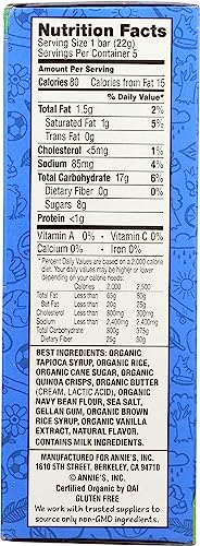 Q: What are Annie's Homegrown Organic Original Crispy Bars made of?A: Annie's Homegrown Organic Original Crispy Bars are made with organic ingredients and are gelatin-free, making them a suitable snack for those seeking vegetarian options.