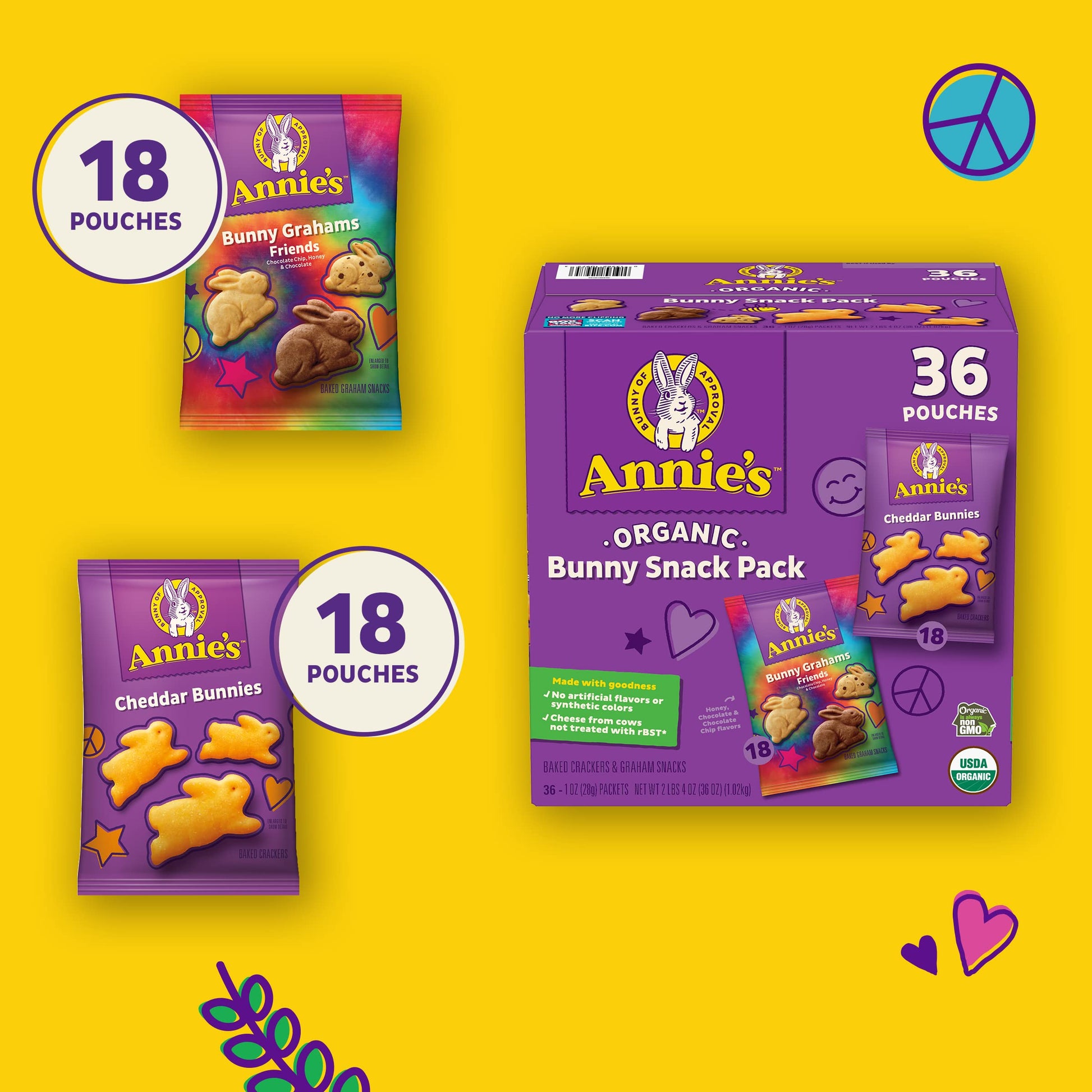 Your Favorite Annie'S Organic Bunny Snacks Come Together In One Hoppy Variety Pack. With Savory Cheddar Bunnies And Sweet Friends Bunny Grahams, There'S A Tasty Treat For Everybunny. Whether You Want Something Sweet Or Cheesy, This Pack Has Your Cravings Covered! Each Organic Snack Comes In A Perfectly Portable Pack For Lunchboxes, Afternoon Snacks And More. Plus, Parents Will Love That These Bunnies Are Made With Non-Gmo Ingredients And Have No Artificial Flavors Or Synthetic Colors. Keep Your Pantry Stocked With This Snack Pack For Easy, Delicious Treats Anytime. Annie'S Makes Products In Over 20 Family-Friendly Categories - From Fruit-Flavored Snacks And Cereal To Mac & Cheese. For Busy Bunnies And Families On The Go, We Help Make Life A Little Easier And More Delicious By Sweetening-Up Packed Lunches Or By Adding To A Savory, Yummy Dinner. Annies Is Devoted To Spreading Goodness Through Nourishing, Tasty Foods And Kindness To The Planet.