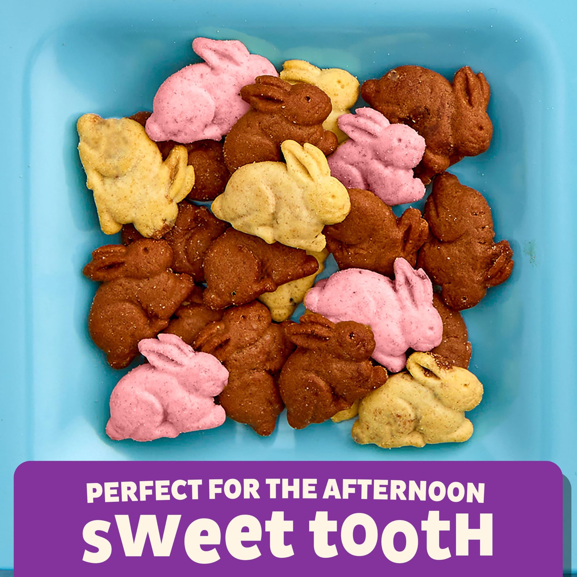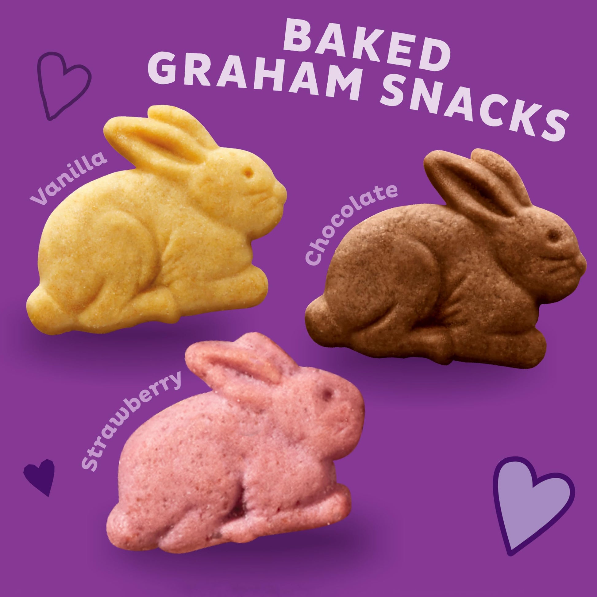 Q: What flavors do the Neapolitan Bunny Grahams come in?A: The Neapolitan Bunny Grahams come in three delightful flavors: strawberry, vanilla, and chocolate, making them a fun and tasty snack for kids.