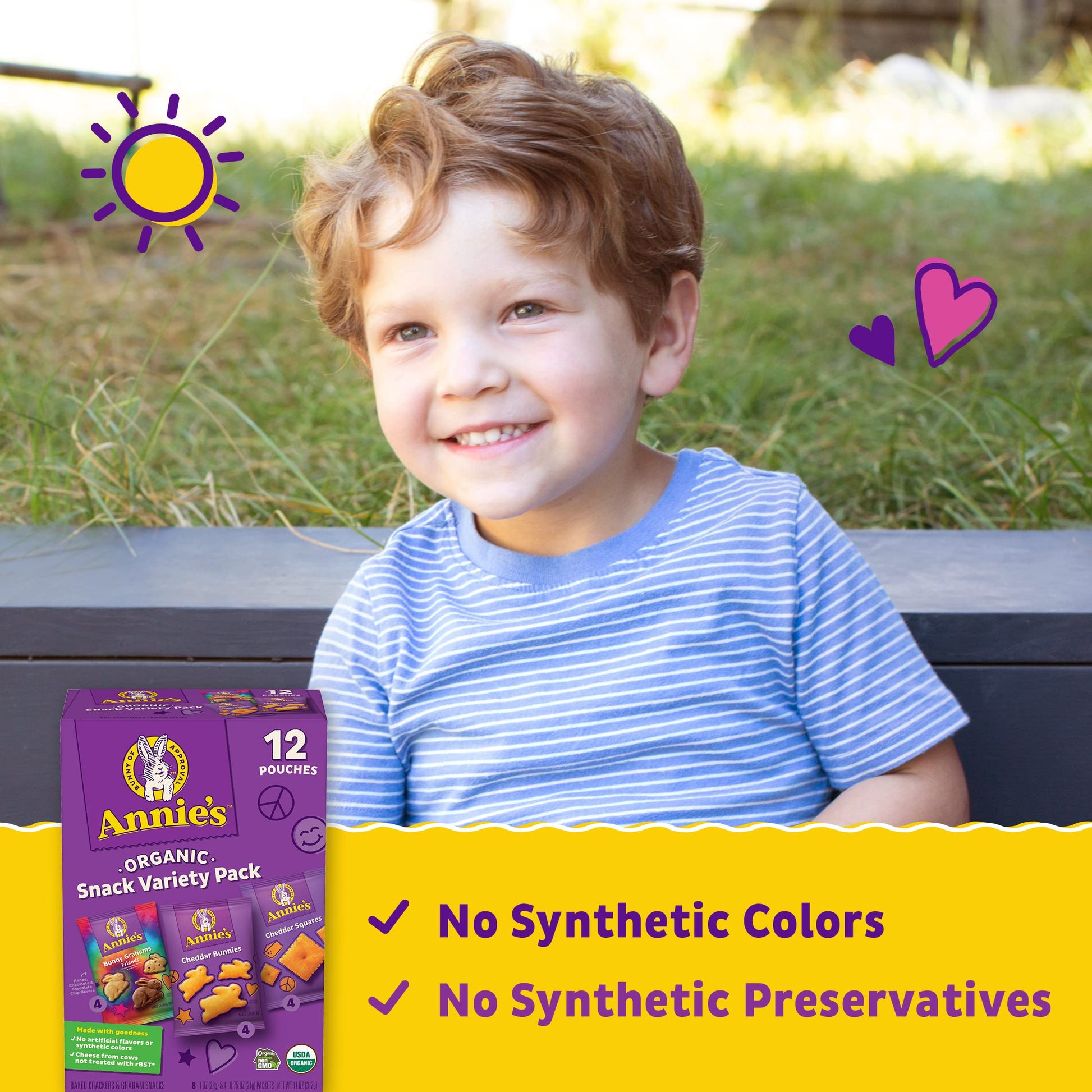 Product Descriptionyour Favorite Annie'S Organic Snack Packs Come Together In One Hoppy Variety Pack. With Cheddar Bunnies, Cheddar Squares And Friends Bunny Grahams, There'S A Tasty Kids' Snack For Everybunny. Whether You Want Something Sweet Or Cheesy, This Pack Has Your Cravings Covered. These Are The Yummy Bunnies That Are Enjoyed By Kids, Adults And All Ages. Each Organic Snack Comes In A Perfectly Portable Pouch For Lunchboxes, Soccer Games And More. Plus, Parents Will Love That These Snacks Are Made With Non-Gmo Ingredients And Have No Artificial Flavors Or Synthetic Colors. Annie'S Makes Products In Over 20 Family-Friendly Categories - From Fruit-Flavored Snacks And Cereal To Mac & Cheese. For Busy Bunnies And Families On The Go, We Help Make Life A Little Easier And More Delicious By Sweetening-Up Packed Lunches Or By Adding To A Savory, Yummy Dinner. Annies Is Devoted To Spreading Goodness Through Nourishing, Tasty Foods And Kindness To The Planet.Annie Withey Believed It Was Possible To Build A Socially Conscious & Successful Business. This Was Her Mission In 1989 When She Wrote Her Name, Address, And Phone Number On The Very First Boxes Of Annies Mac & Cheese. Her Legacy Lives On As Annies Strives To Change The Future For Our Kids, Starting With Food. Annies, Now Based In Berkeley, Ca, Believes That Food Is The Most Powerful Force For Change We Have, And That Each Generation Owes It To The Next To Leave The Planet Better Than We Found It. This Is Why They Make Their Products With Integrity, Invest In Organic And Regenerative Farming Practices, And Always Consider People, Planet, And Their Bunny Footprint With All That They Do. Best Known For Their Delicious Mac & Cheese And Bunny-Shaped Snacks, Annies Makes Yummy Products In Over 20 Family-Friendly Categories - Spanning From Fruit Snacks To Cereal To Bars, Plus A Variety Of Gluten-Free And Vegan Products For Their Friends With Special Diets. But Annies Is Truly More Than Just Food. Annies Is A Purpose Driven Brand Who Believes That Together, We Can Leave Behind A Healthier Planet For Our Kids.Annie Withey Believed It Was Possible To Build A Socially Conscious & Successful Business. This Was Her Mission In 1989 When She Wrote Her Name, Address, And Phone Number On The Very First Boxes Of Annies Mac & Cheese. Her Legacy Lives On As Annies Strives To Change The Future For Our Kids, Starting With Food. Annies, Now Based In Berkeley, Ca, Believes That Food Is The Most Powerful Force For Change We Have, And That Each Generation Owes It To The Next To Leave The Planet Better Than We Found It. This Is Why They Make Their Products With Integrity, Invest In Organic And Regenerative Farming Practices, And Always Consider People, Planet, And Their Bunny Footprint With All That They Do. Best Known For Their Delicious Mac & Cheese And Bunny-Shaped Snacks, Annies Makes Yummy Products In Over 20 Family-Friendly Categories - Spanning From Fruit Snacks To Cereal To Bars, Plus A Variety Of Gluten-Free And Vegan Products For Their Friends With Special Diets. But Annies Is Truly More Than Just Food. Annies Is A Purpose Driven Brand Who Believes That Together, We Can Leave Behind A Healthier Planet For Our Kids.