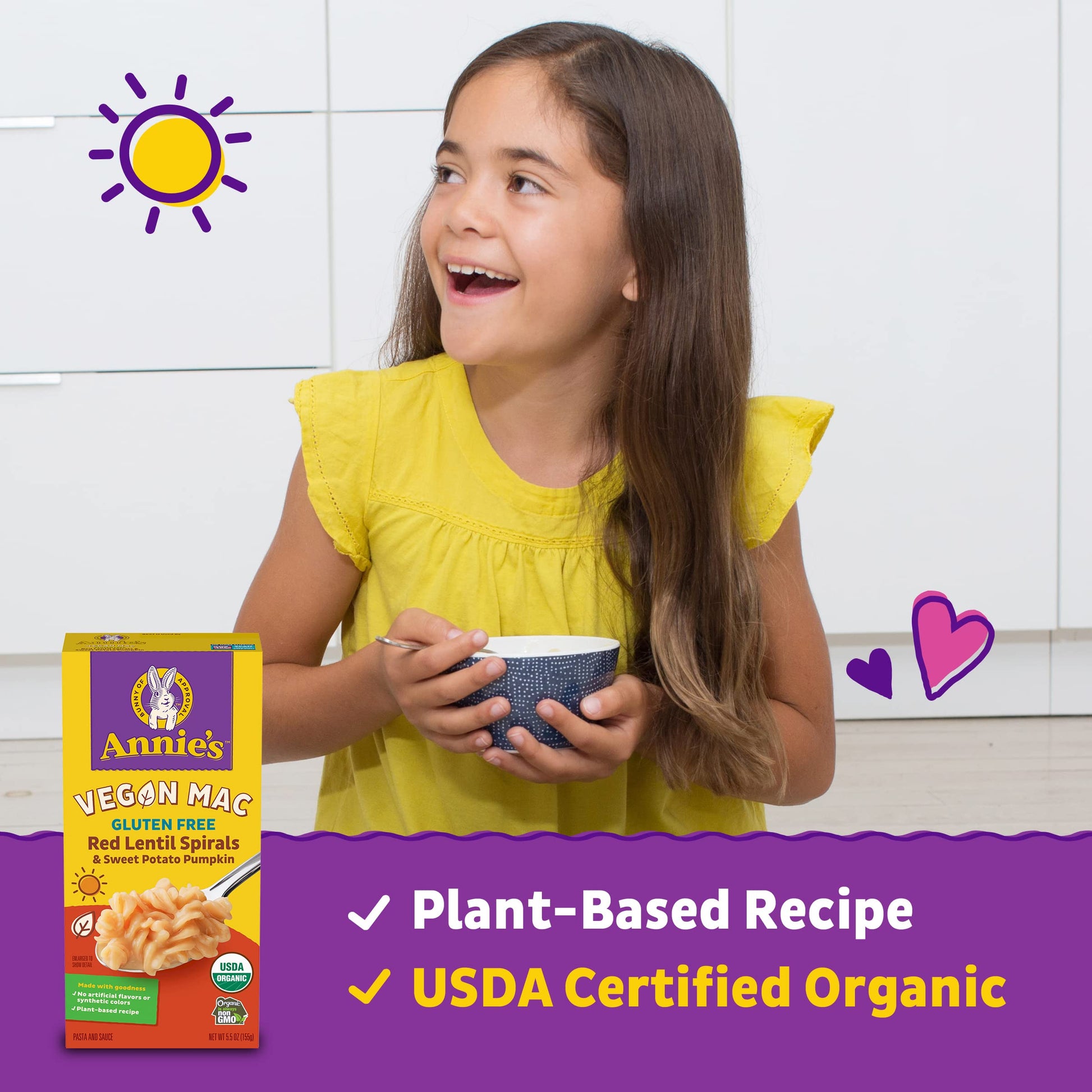 Annie'S Vegan Mac With Red Lentil Spirals And Sweet Potato Pumpkin Sauce Makes It Easy To Get A Tasty, Plant-Based Recipe On The Table In Minutes. Following The Directions On The Package, Simply Boil, Stir, Drain, Then Pour In The Seasoning Packet And Non-Dairy Milk. This Non-Gmo Vegan Mac With Yummy Sauce Is Sure To Make Everybunny Smile. And Like All Annie'S Organic Food, It'S Made With Goodness. That Means No Artificial Flavors Or Synthetic Colors, Plus A Half Cup Of Hidden Veggies In Every Serving. Annie'S Makes Products In Over 20 Family-Friendly Categories, From Fruit Flavored Snacks And Cereal To Mac And Cheese. For Busy Bunnies And Families On The Go, We Help Make Life A Little Easier And More Delicious By Spreading Goodness Through Tasty Foods And Kindness To The Planet.