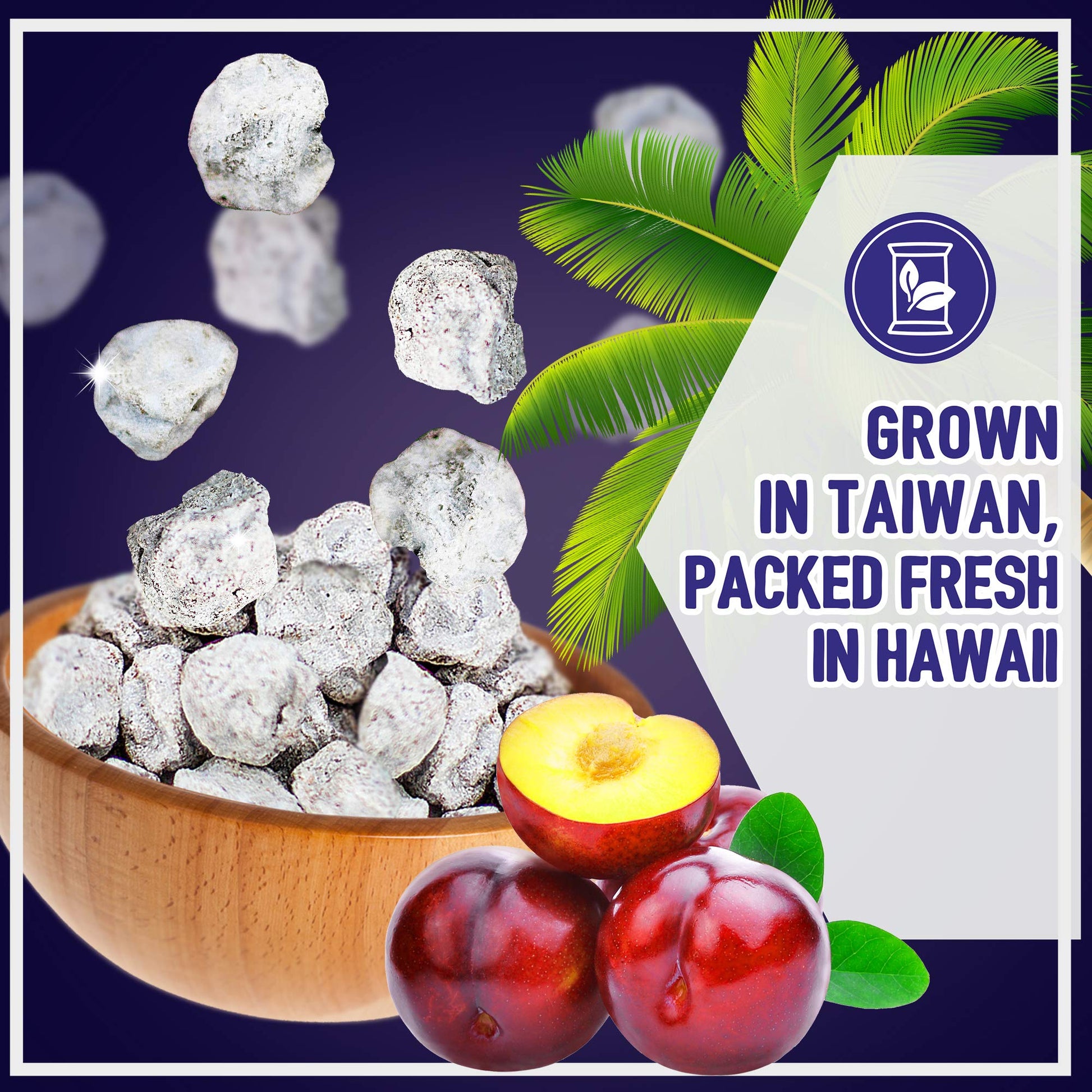 - Q: Where are these Li Hing Mui plums sourced from? A: The Li Hing Mui plums are sourced from Taiwan, dried, and then packed in Hawaii, ensuring they retain their quality and flavor.