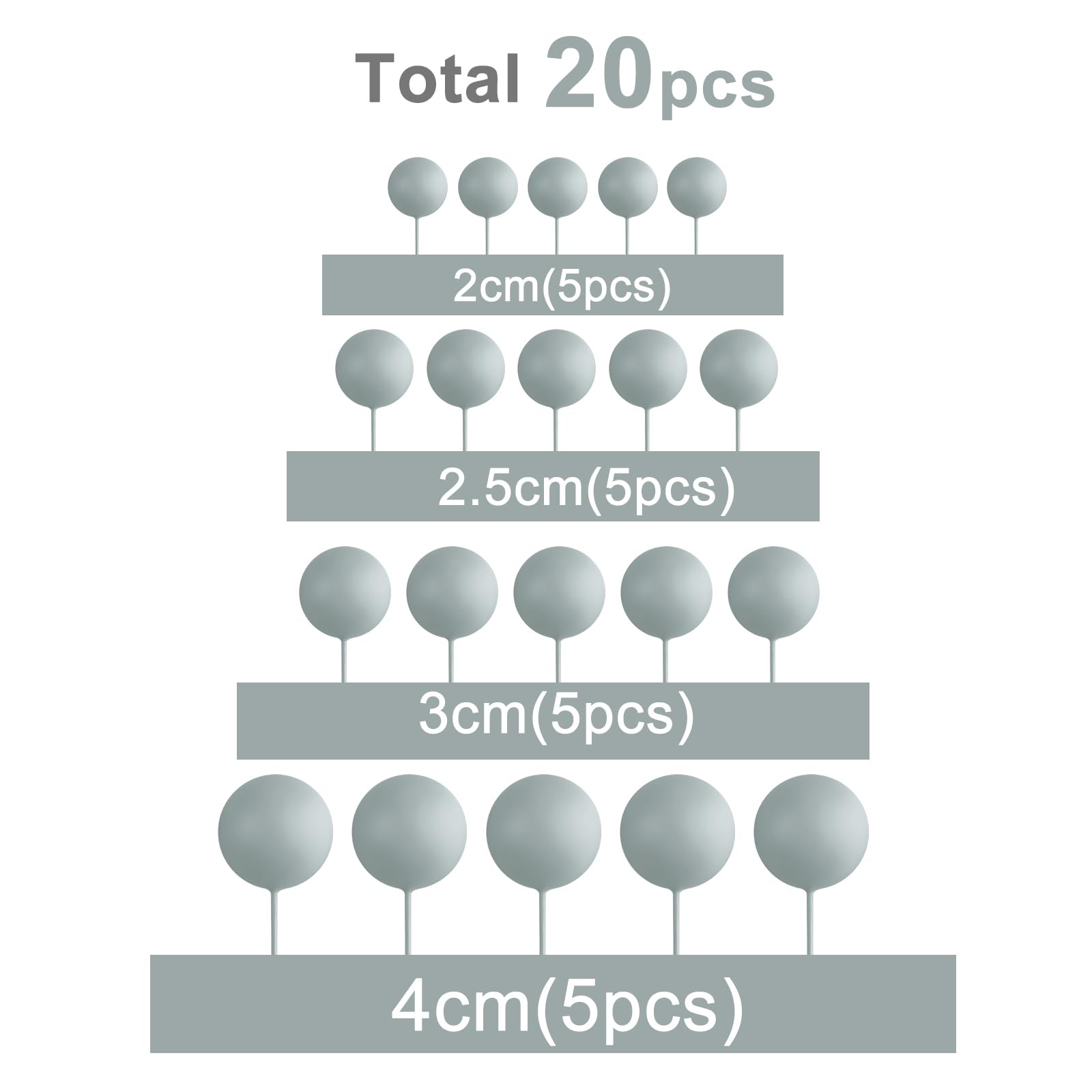 Specifications: Material: Foam And Wire. Color: Gray. Size: Diameters Are 0.79 Inch/ 2 Cm, 0.98 Inch/ 2.5 Cm, 1.18 Inches/ 3 Cm, 1.57 Inches/ 4 Cm, 5 Pieces Of Each Size. Features: Smooth Surface, Bright Color, The Balloon Cake Topper Is Full Finished, Does Not Require Assembly, And Can Be Inserted Directly Into The Cake Without Additional Tools, And Saving Time. Package Includes: 20 Pcs Gray Ball Cake Toppers Decorations In 4 Sizes.