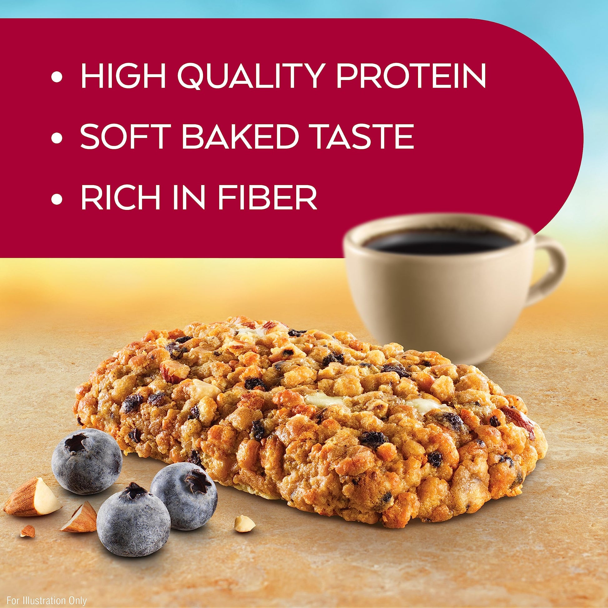 View compareAtkins Soft Baked Energy Bars, Blueberry, 15g Protein,2g Sugar, Excellent Source of Fiber, Low Carb, 4 Packs (5 Bars Each)