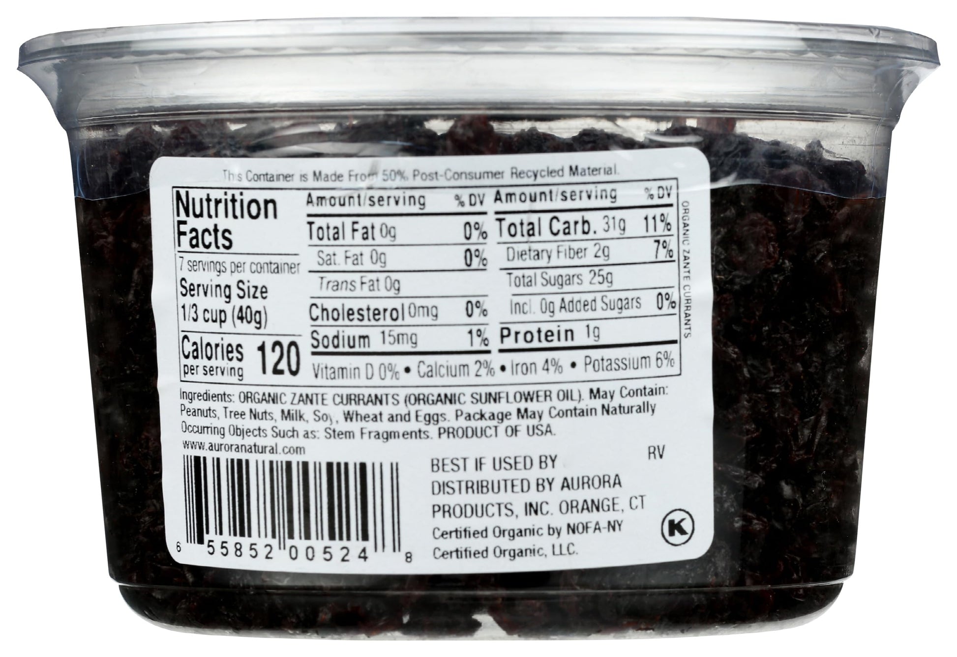 Q: What are the main ingredients in Aurora Products Organic Currants?A: Aurora Products Organic Currants are made from high-quality currants, free from hydrogenated fats, high fructose corn syrup, synthetic nitrates, and nitrites, ensuring a healthy and delicious snack option.
